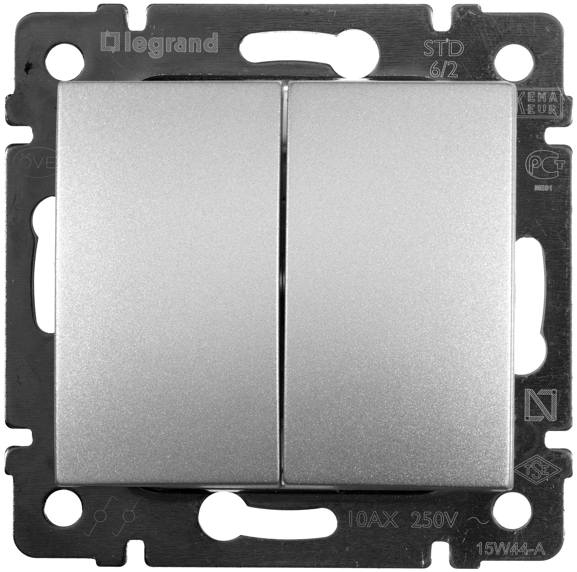 Legrand (Легранд) Переключатель двухклавишный цвета алюминий, Valena 770108