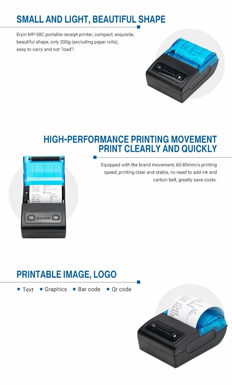 Карманный мини-принтер для чеков, 58 мм