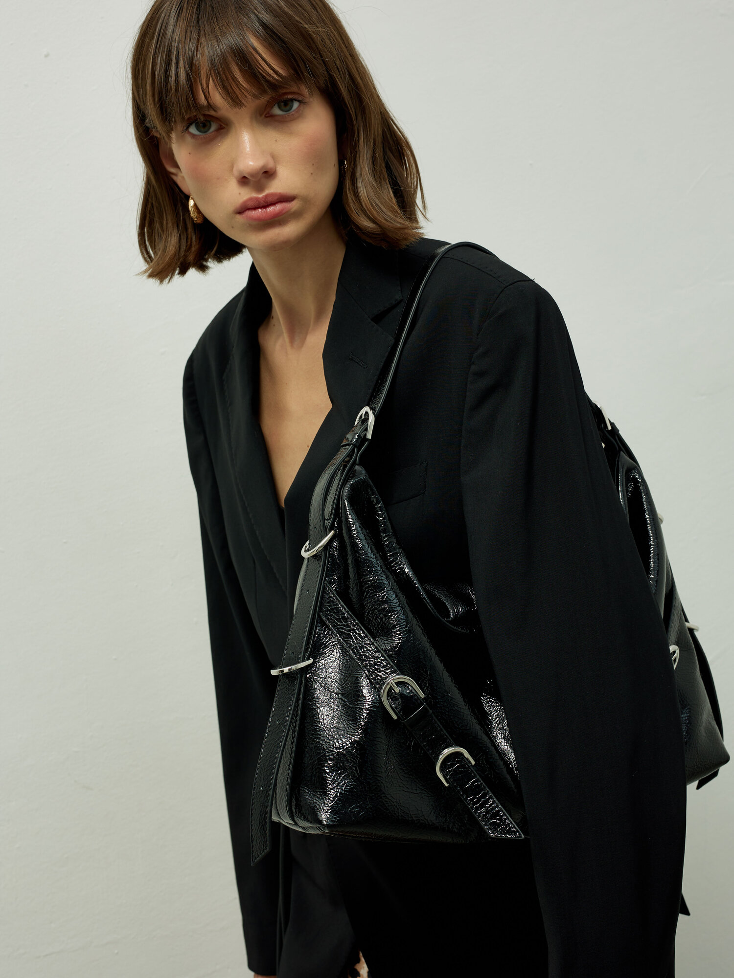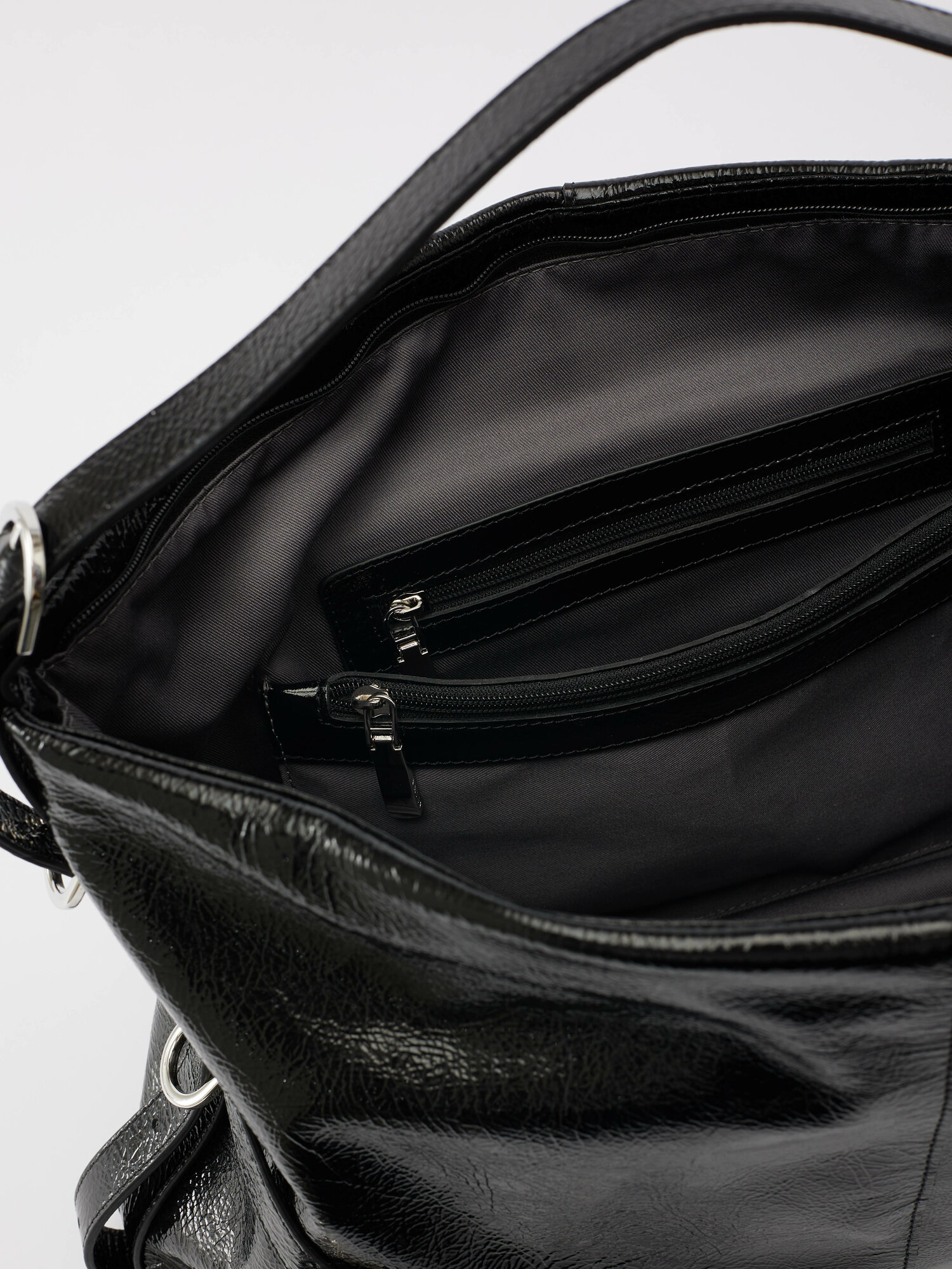 Купить Сумка женская хобо AFINA 739 из натуральной кожи лаковая черная