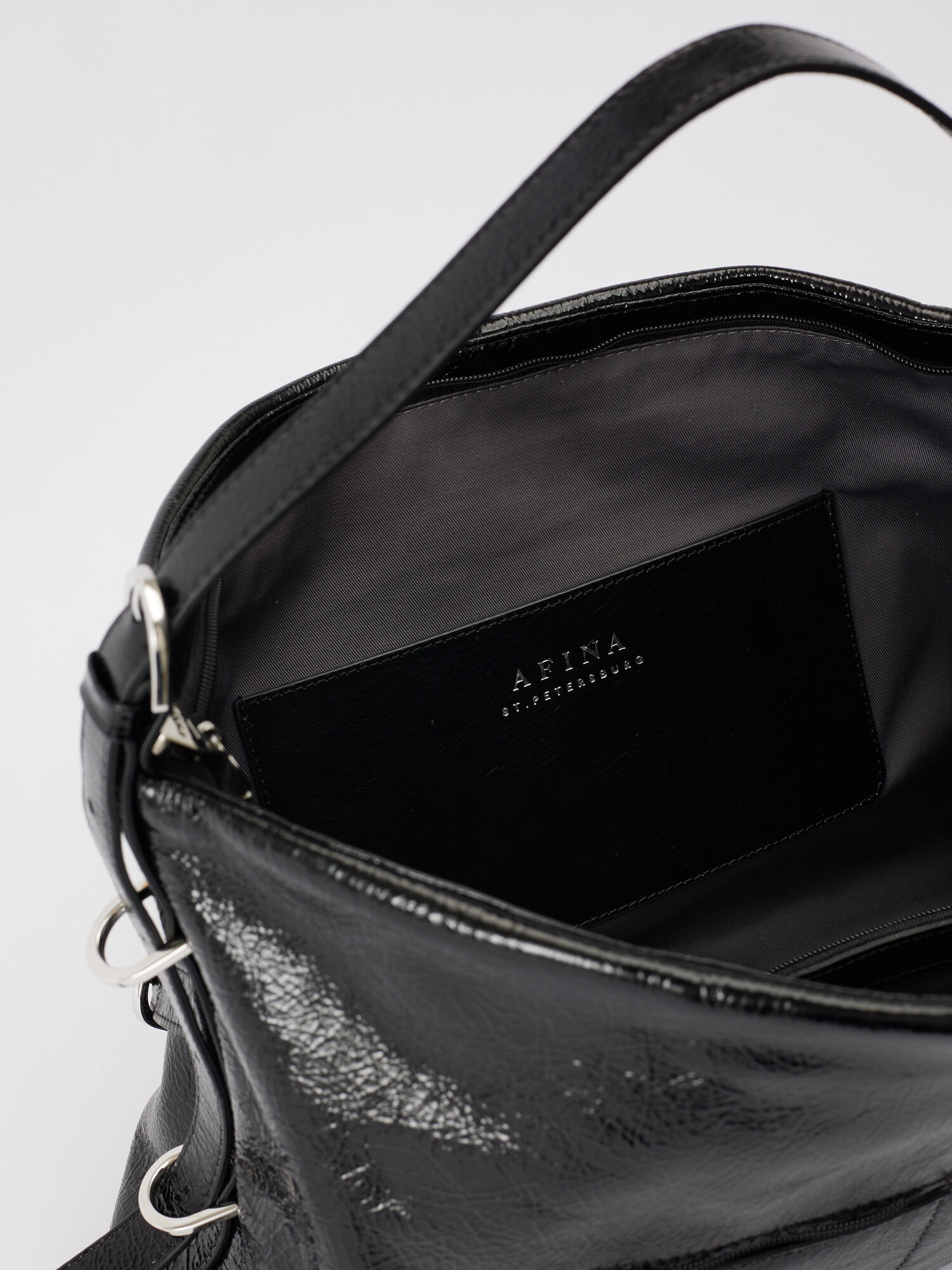 Сумка женская хобо AFINA 739 из натуральной кожи лаковая черная интересное: