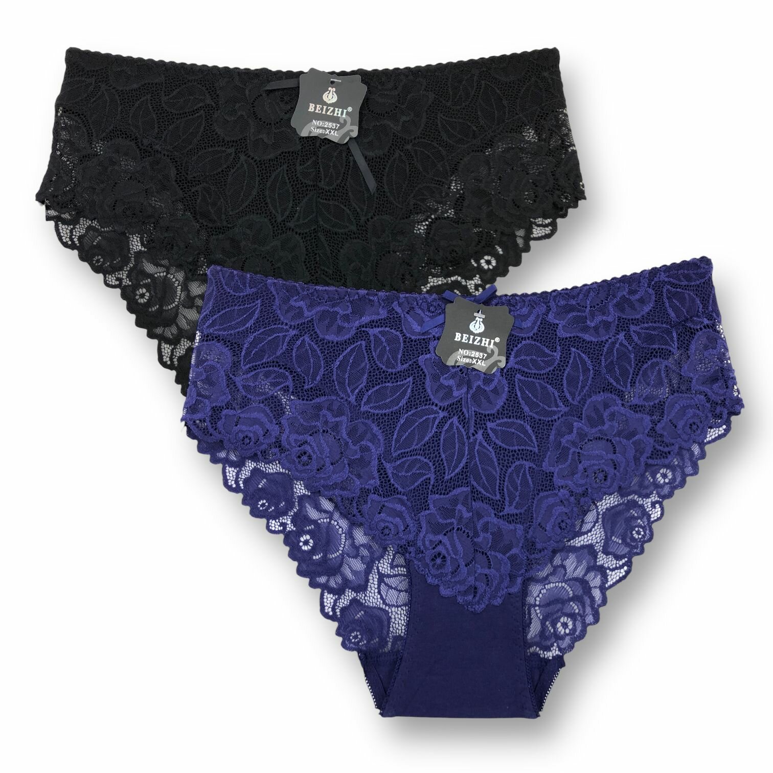 Трусы женские "Beizhi" N.2537, 3XL, Черный, Синий , 2 шт.