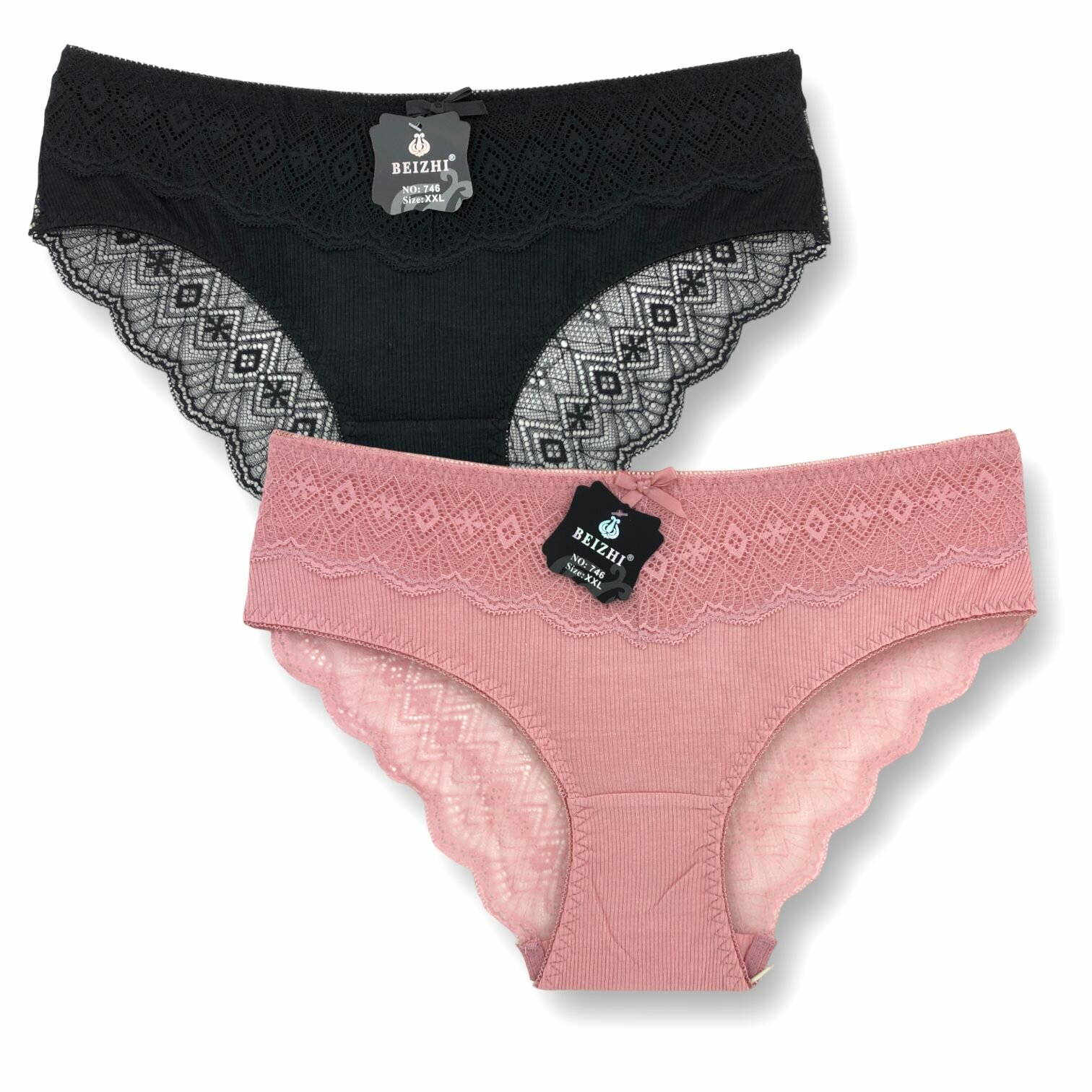 Трусы женские "Beizhi" N.6603, 2XL Черный, Розовый , 2 шт., fbo
