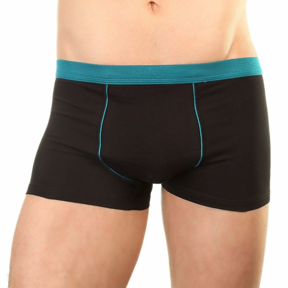 Мужские хлопковые трусы-боксеры с бирюзовой резинкой и окантовкой, черный, XL