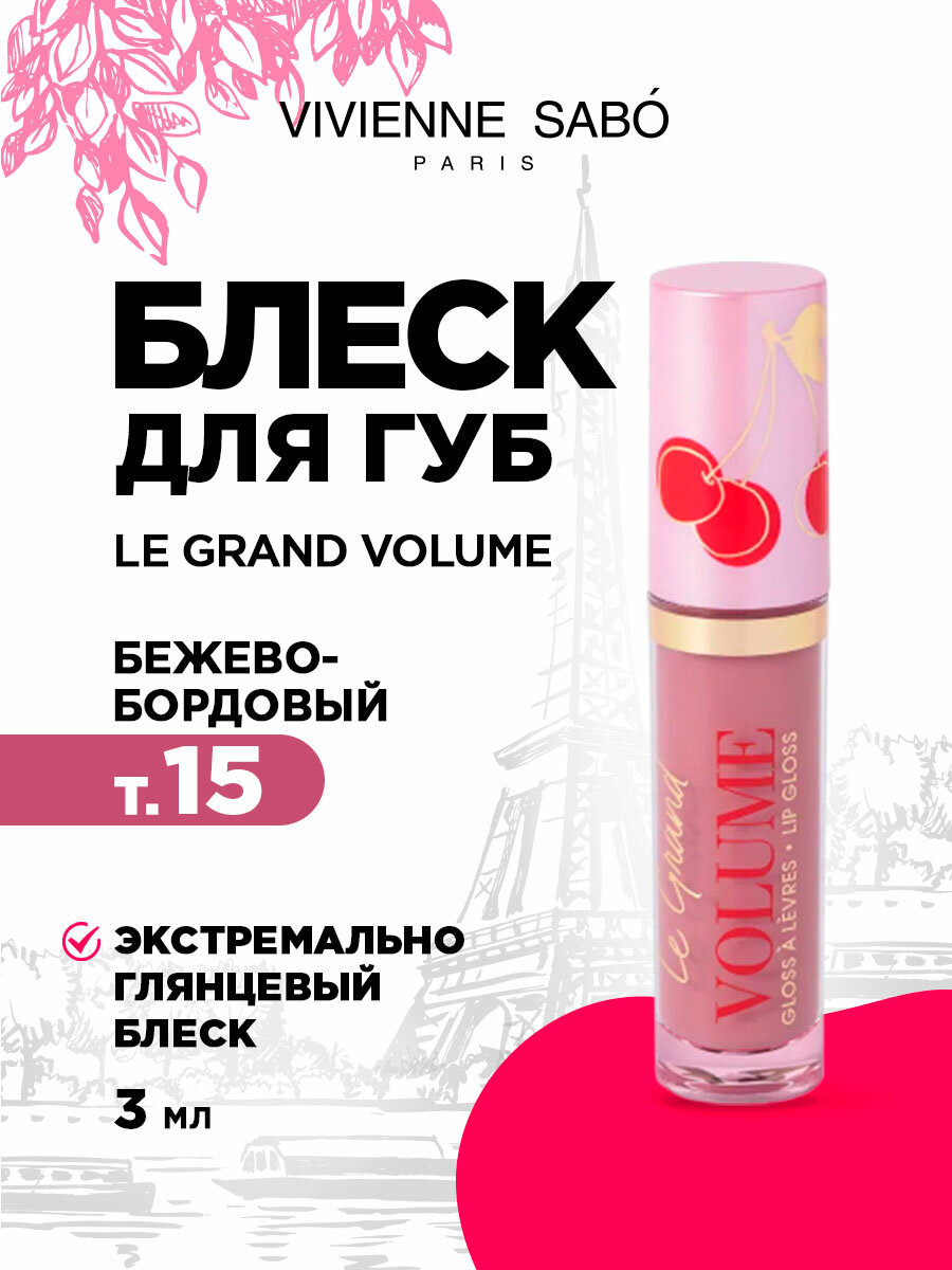 VIVIENNE SABO Блеск для губ Lip gloss Gloss à lèvres Le grand volume, 3 мл, 15 бежево-бордовый