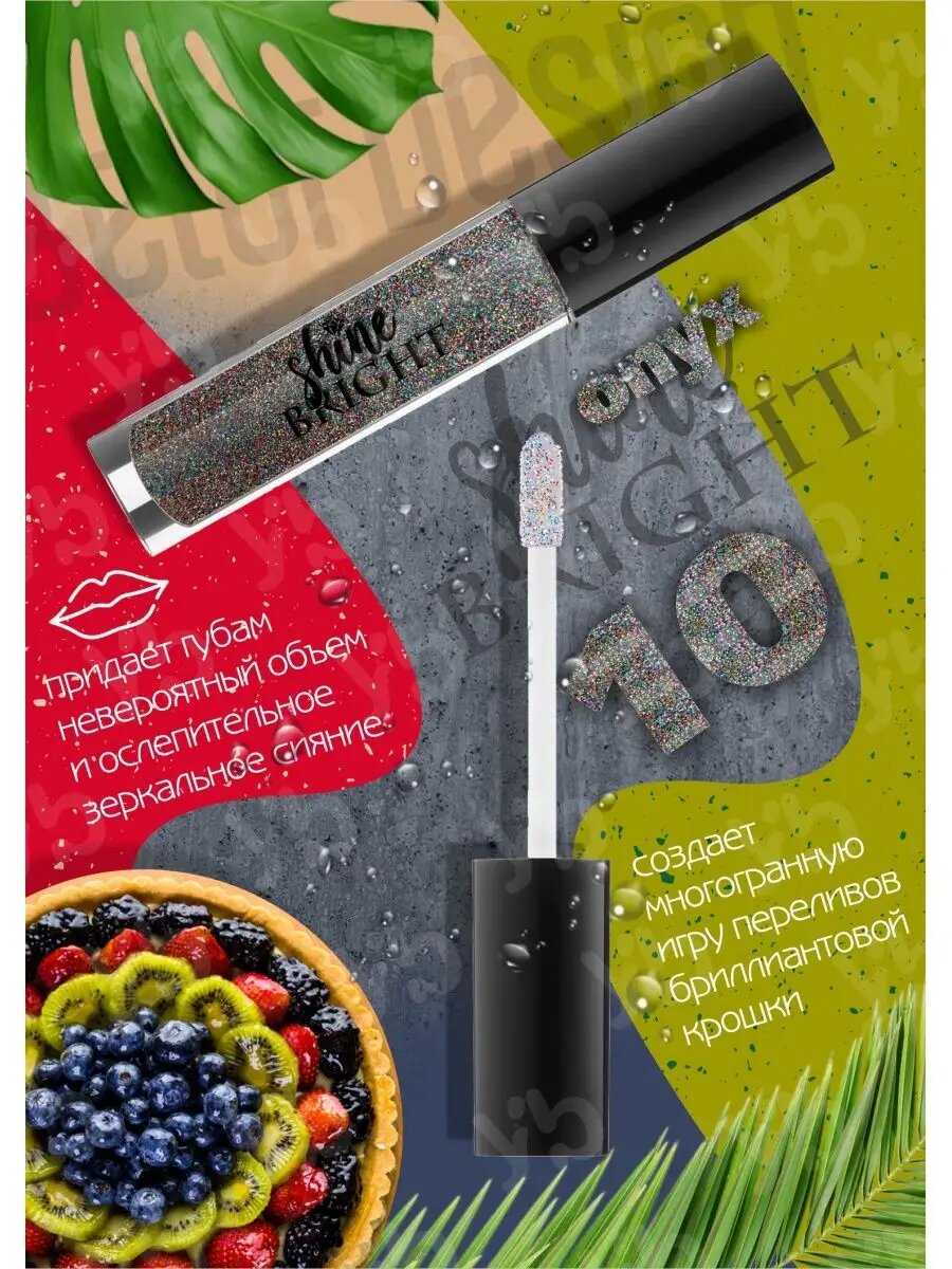 Блеск для губ Shine bright с блестками тон 10