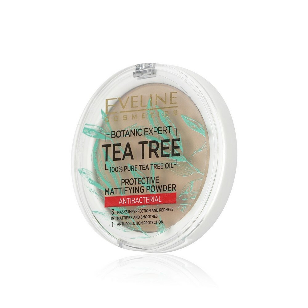 Пудра компактная для лица `EVELINE` BOTANIC EXPERT 3 в 1 антибактериальная матирующая тон 001 transparent