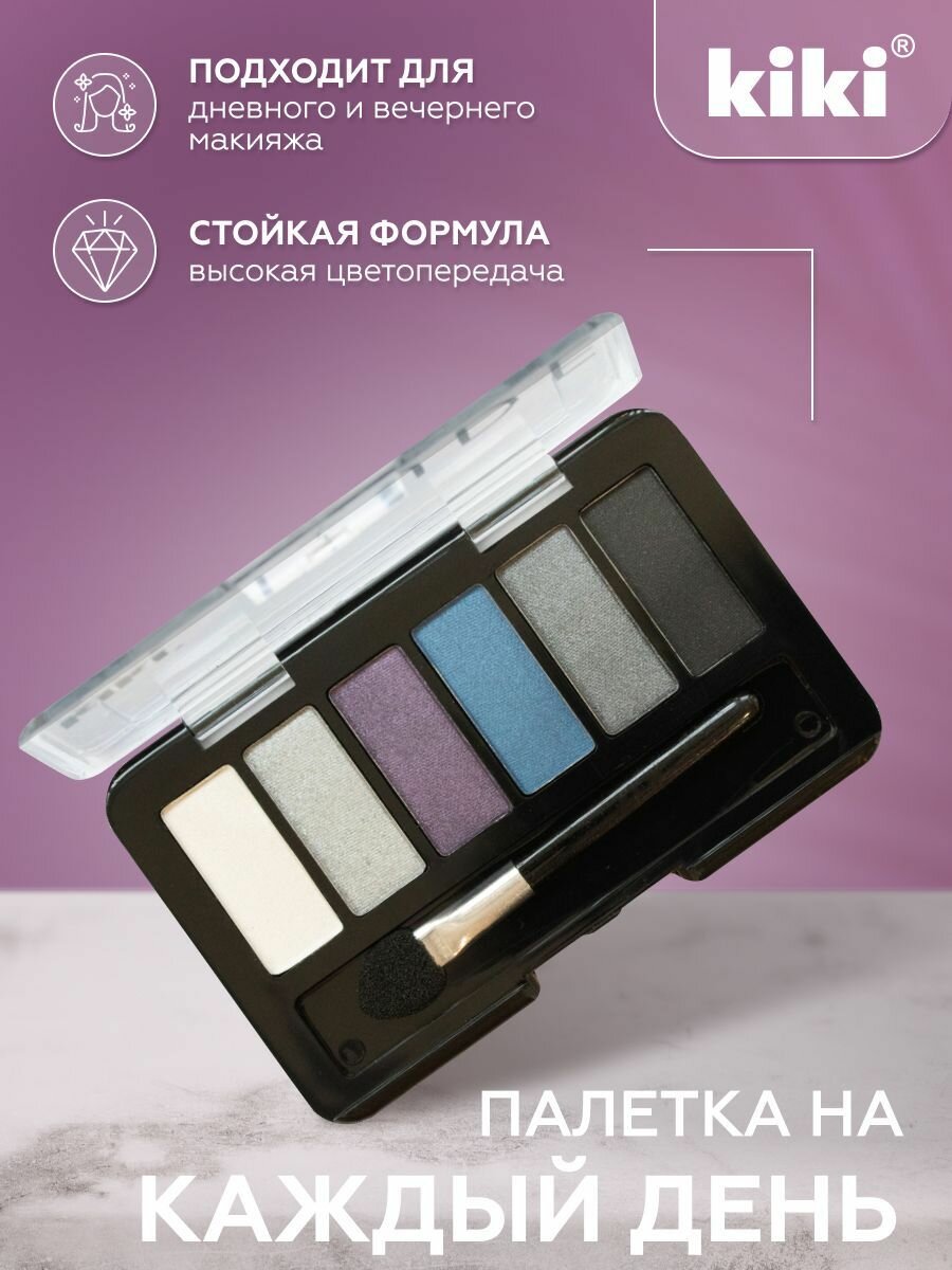 Тени для век kiki NUDE тон 904 голубой топаз стойкая палетка 6 оттенков с кистью для растушевки, матовые, шиммерные