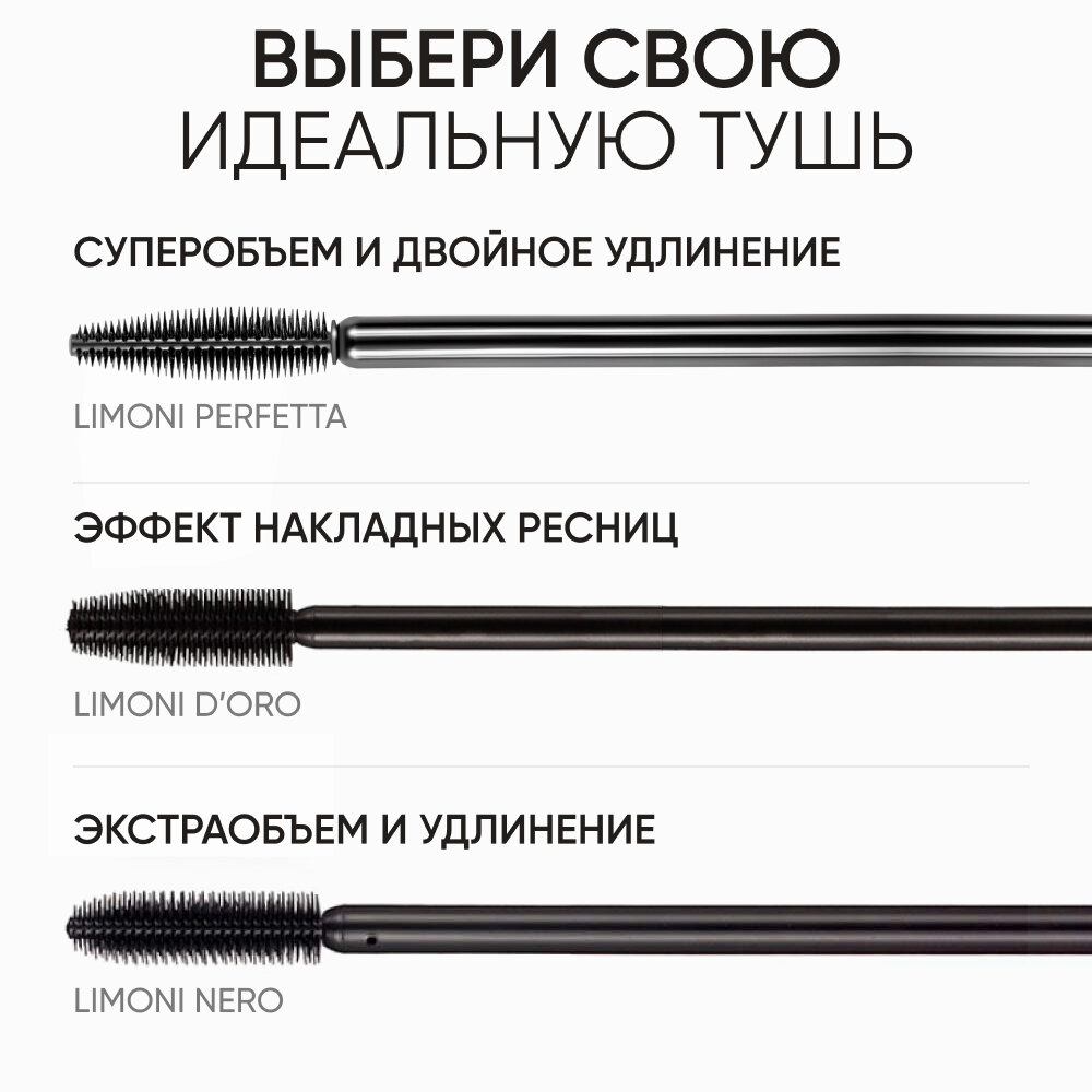 LIMONI Тушь для ресниц черная супер объем и удлинение, черная PERFETTA