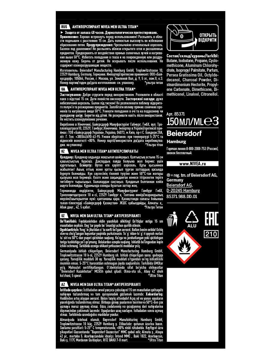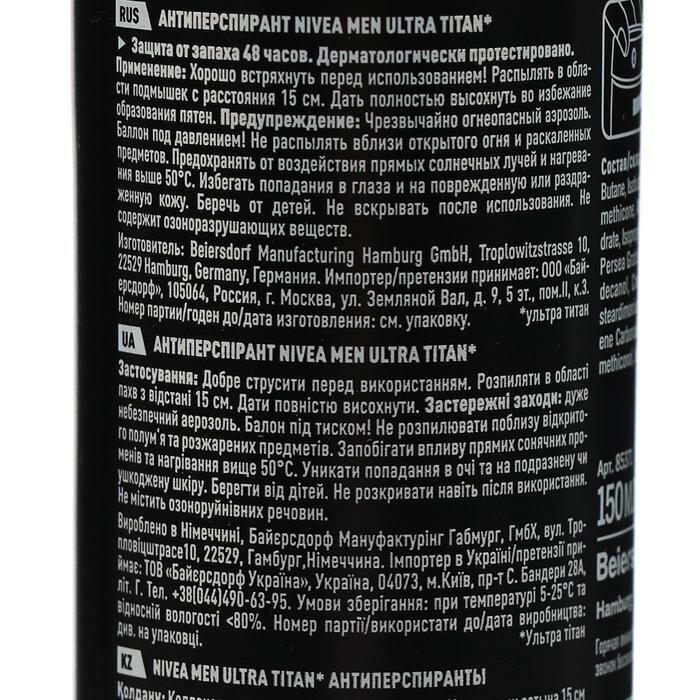 Дезодорант-спрей для мужчин Ultra Titan 150 мл интересное: