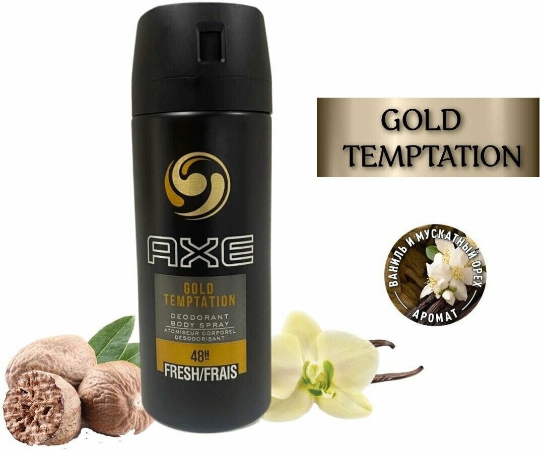 AXE мужской дезодорант-спрей GOLD TEMPTATION, Ваниль и мускатный орех, 48 часов защиты 150 мл