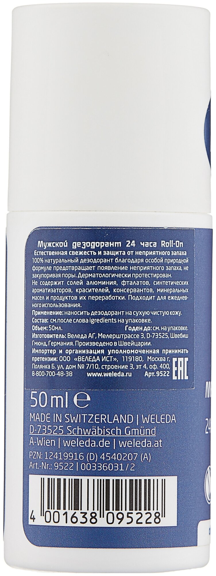 Дезодорант мужской 24 часа Roll-On Weleda/Веледа фл. 50мл (9522) интересное:
