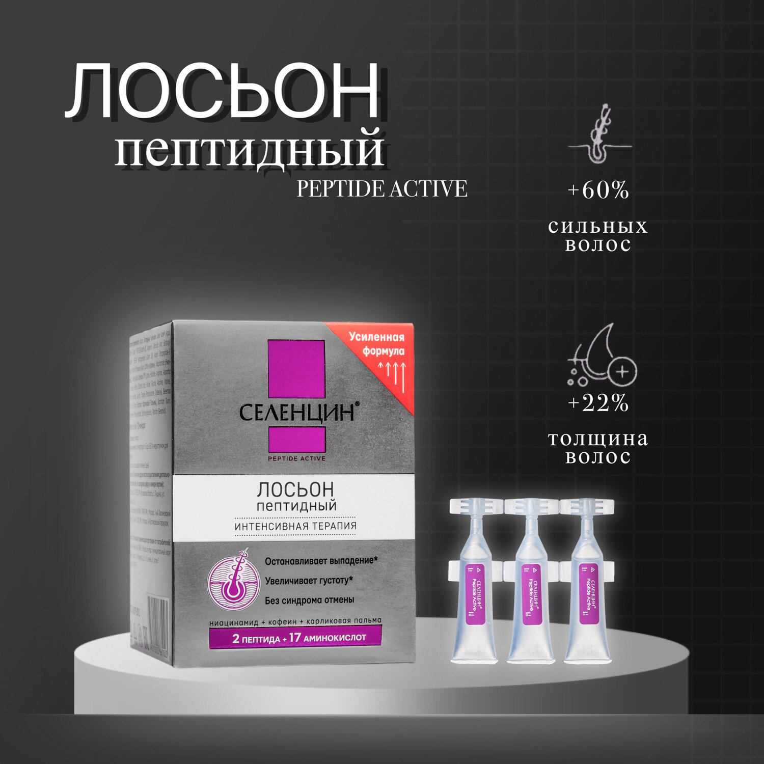 Селенцин Лосьон Пептидный для восстановления густоты волос "Peptide Active", ампулы 15 шт./5 мл в коробке. интересное: