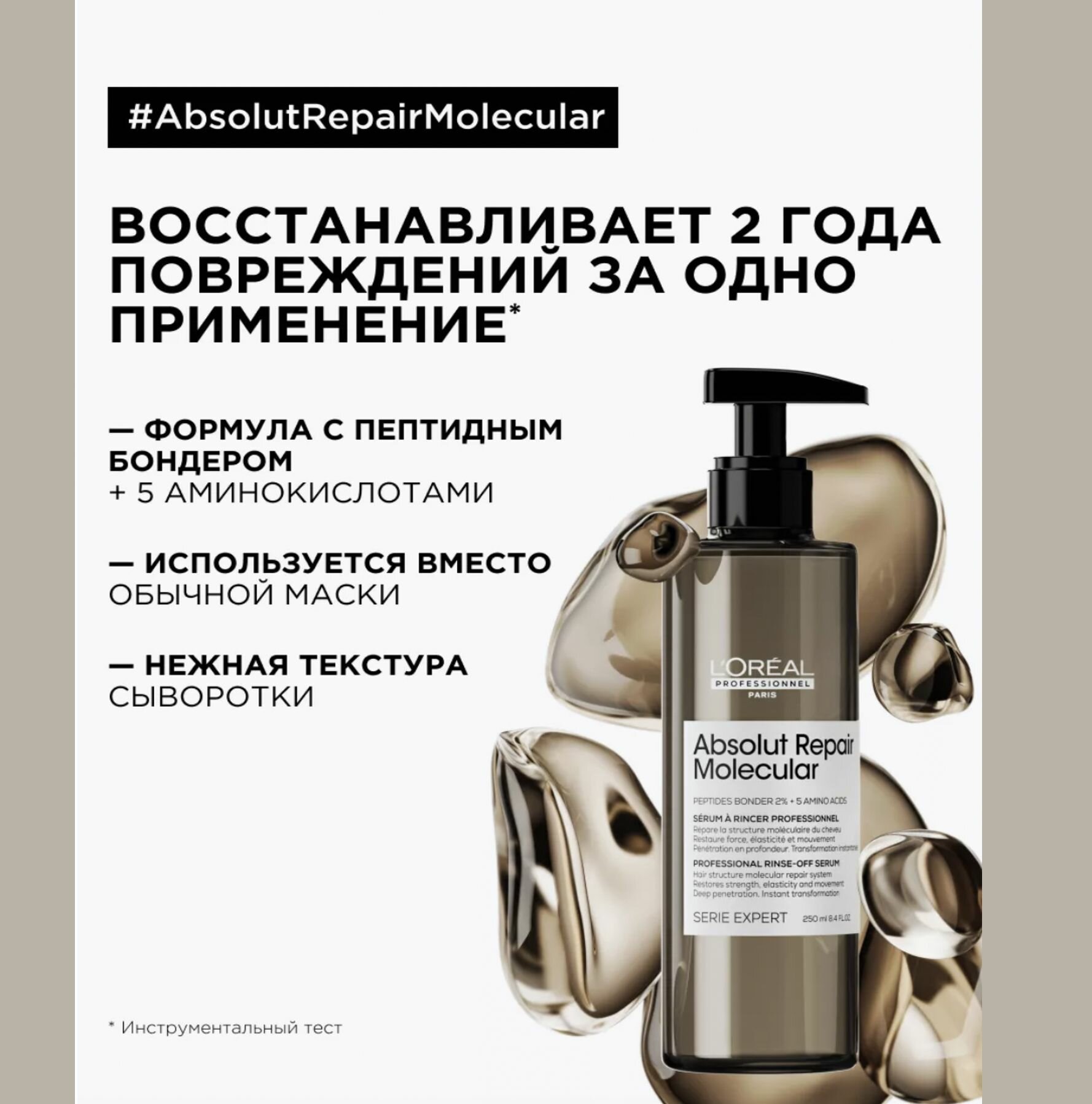 L′Oreal Professionnel Absolut Repair Molecular Rinse - Off Serum (Молекулярная смываемая сыворотка для глубокого восстановления поврежденных волос), 250 мл