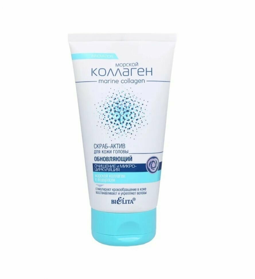 Bielita Морской коллаген marine collagen скраб-актив для кожи головы обновляющий Очищение и микроциркуляция, 150 г, 150 мл, туба