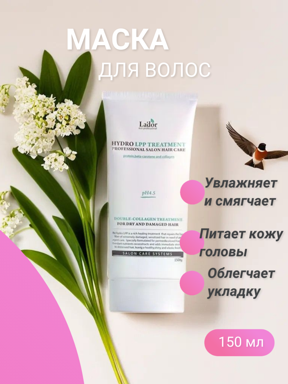 La'dor Eco Hydro LPP Treatment – восстанавливающая, профессиональная, увлажняющая маска для волос с коллагеном, 150 мл