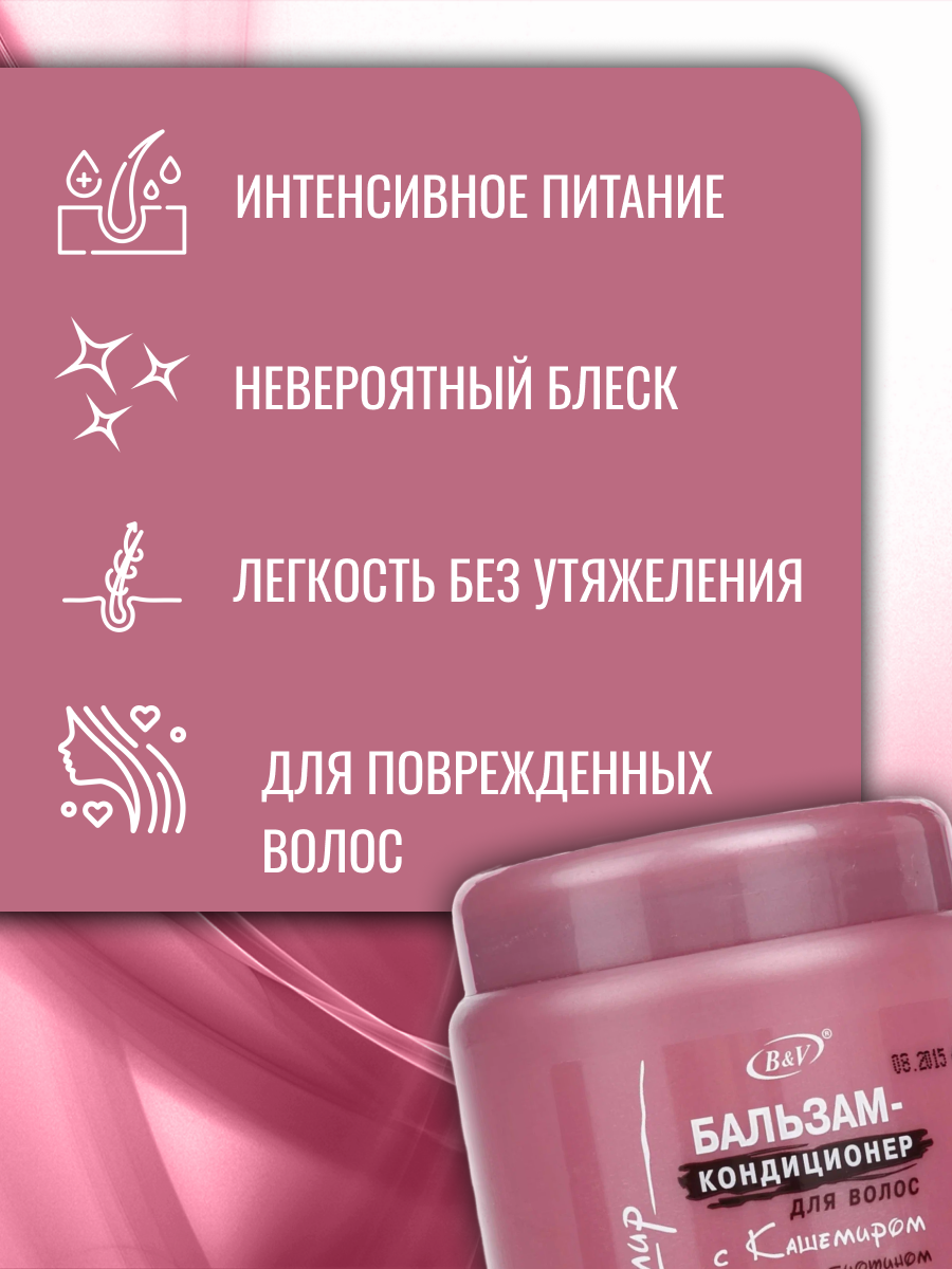 | Дополнительная информация | Волшебное действие бальзама проявляется почти мгновенно, за считанные секунды. Кашемир, воск пчелиный, гуаровый кондиционер, масло силиконовое и биотин (витамин Н, коэнзим R) моментально выравнивают структуру волос, насыщают их силой, придают упругость. Бальзам незаменим для ухода за сухими, ломкими и поврежденными волосами. |