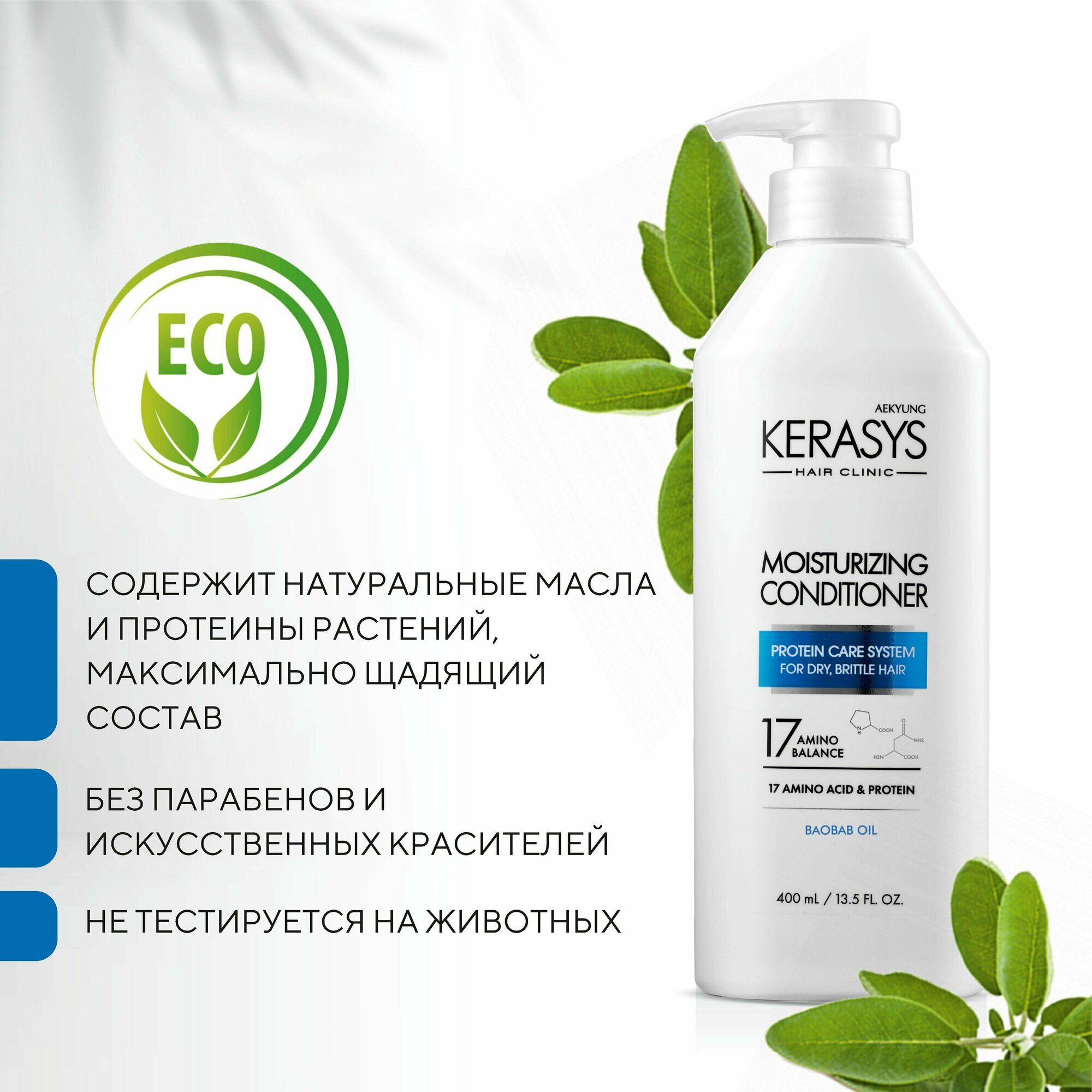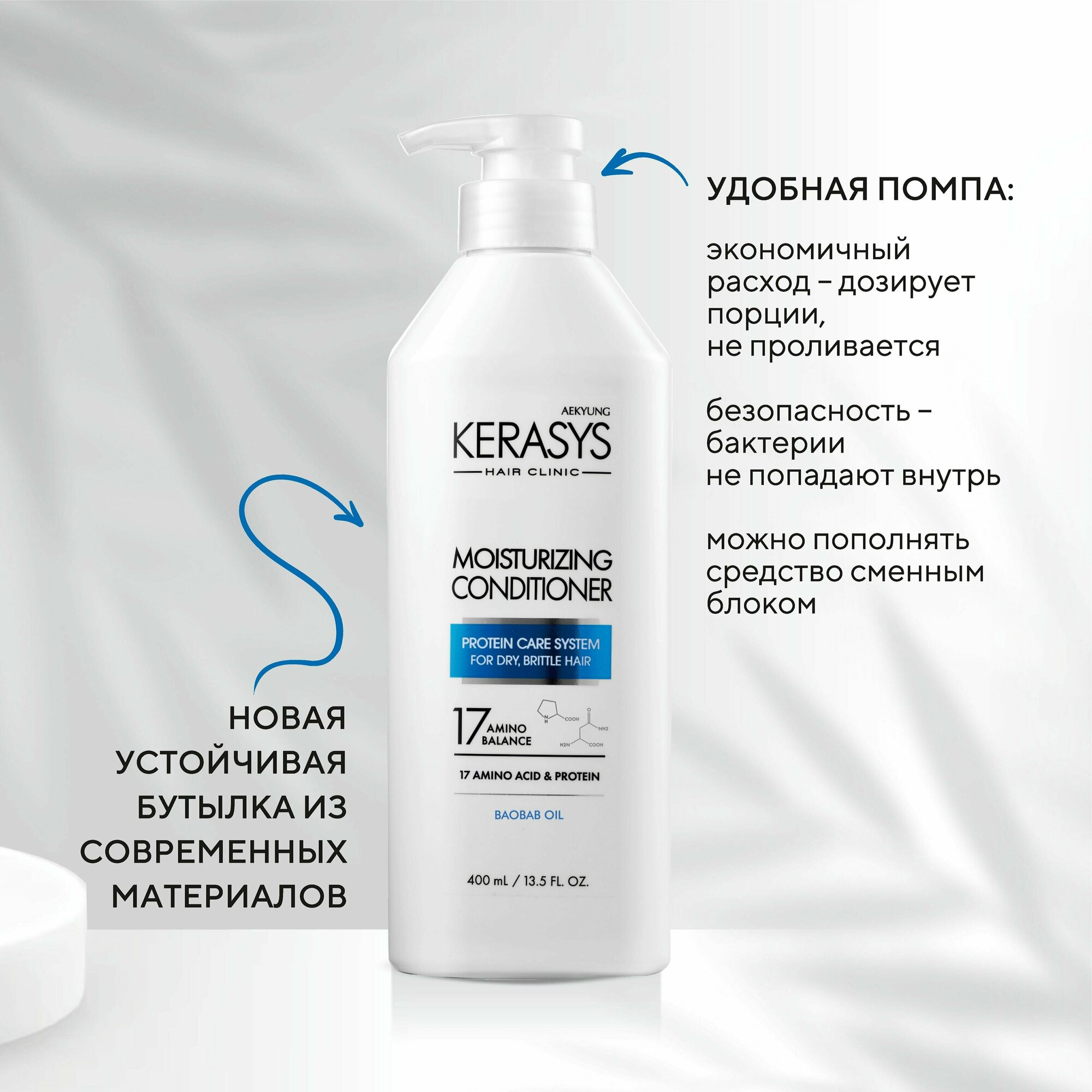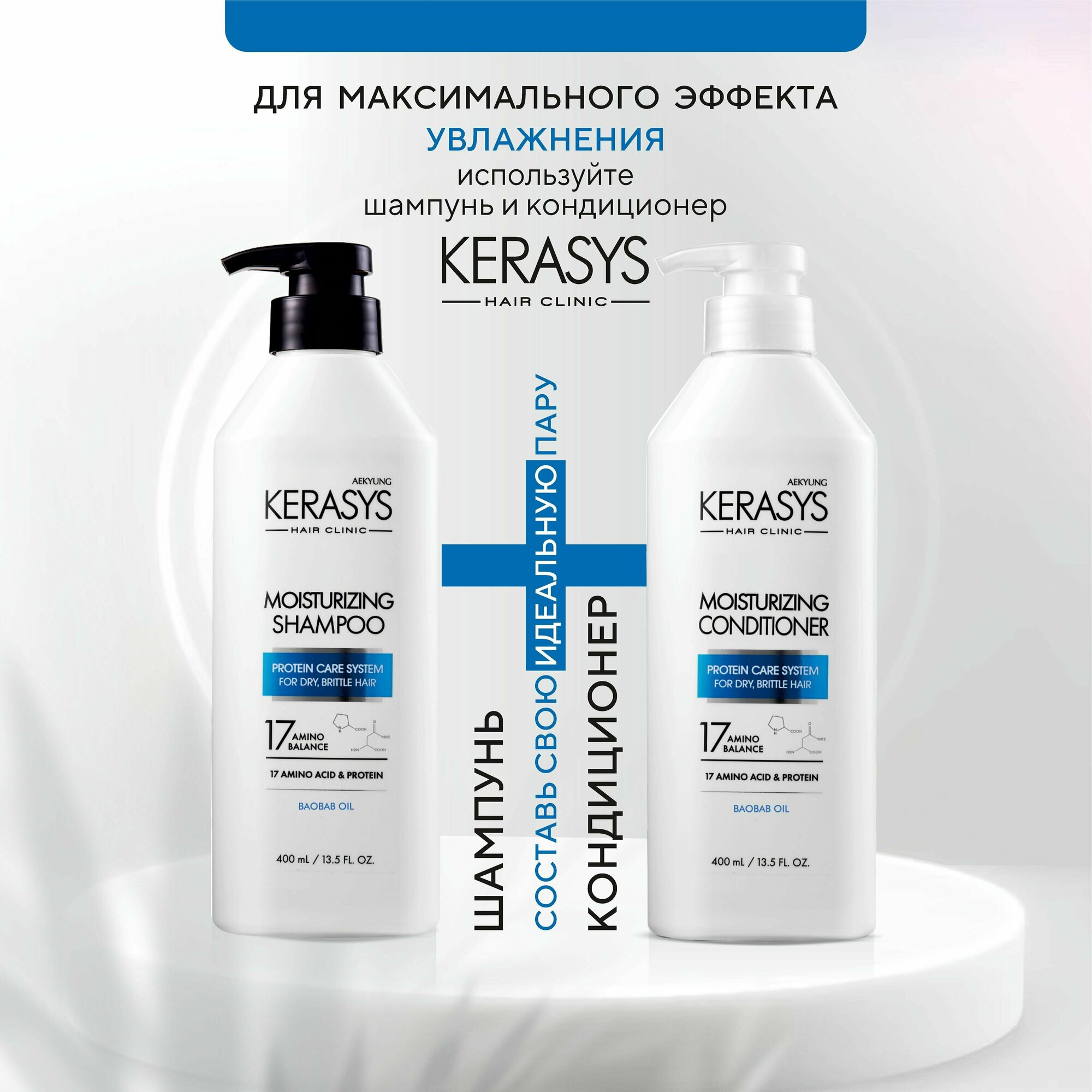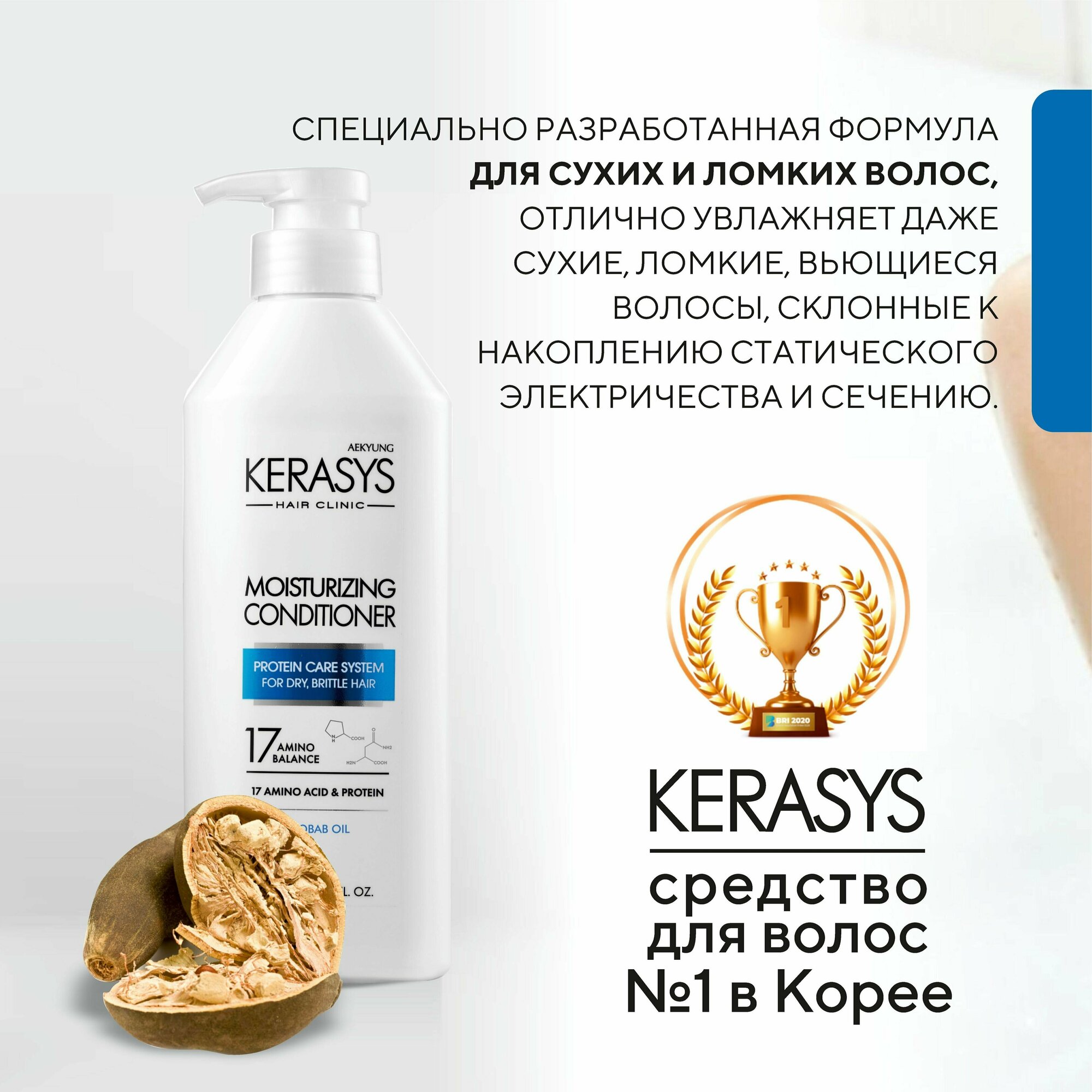 Купить Kerasys Кондиционер для волос увлажняющий 400 мл корейский протеиновый для сухих и ломких, вьющихся, ослабленных волос, женский Корея