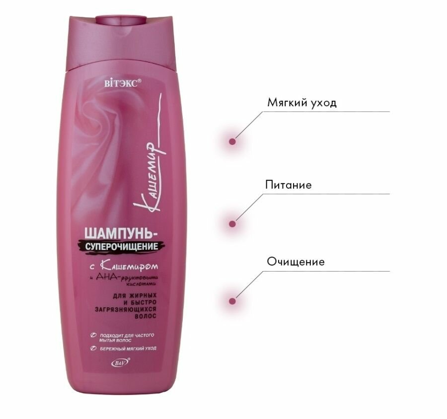 Купить Витэкс Шампунь-суперочищение для жирных, Кашемир, с АНА- и фруктовыми кислотами, 500 мл - 2 штуки