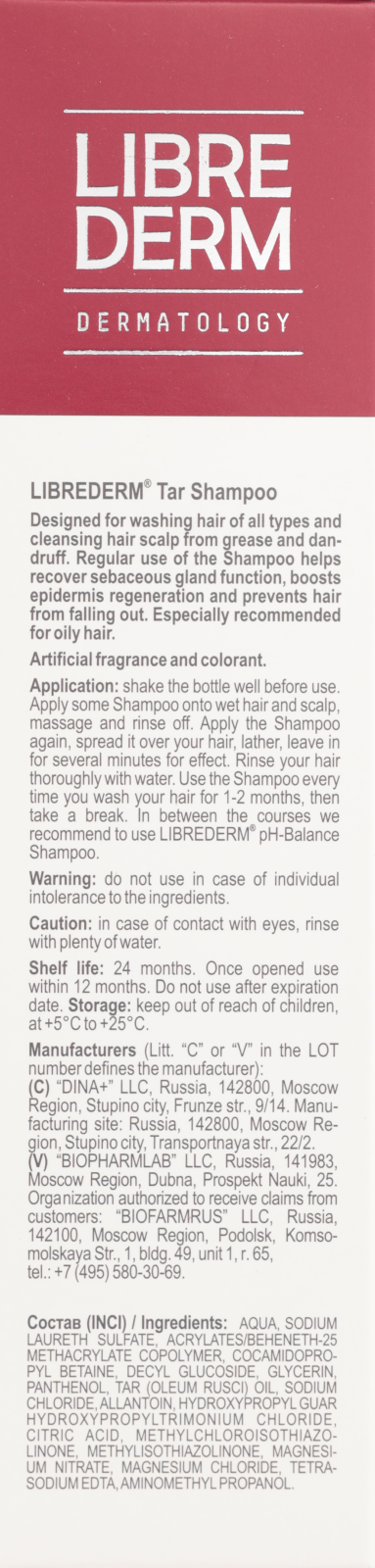 Librederm шампунь Tar Деготь при жирной себорее, 250 мл