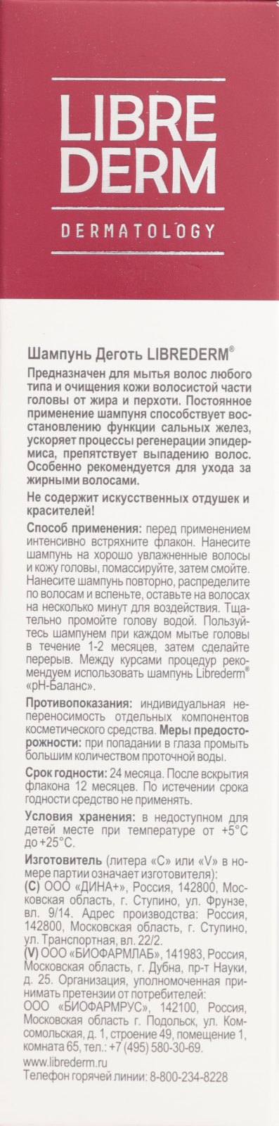 Либридерм (Librederm) шампунь деготь 250 мл 1 шт