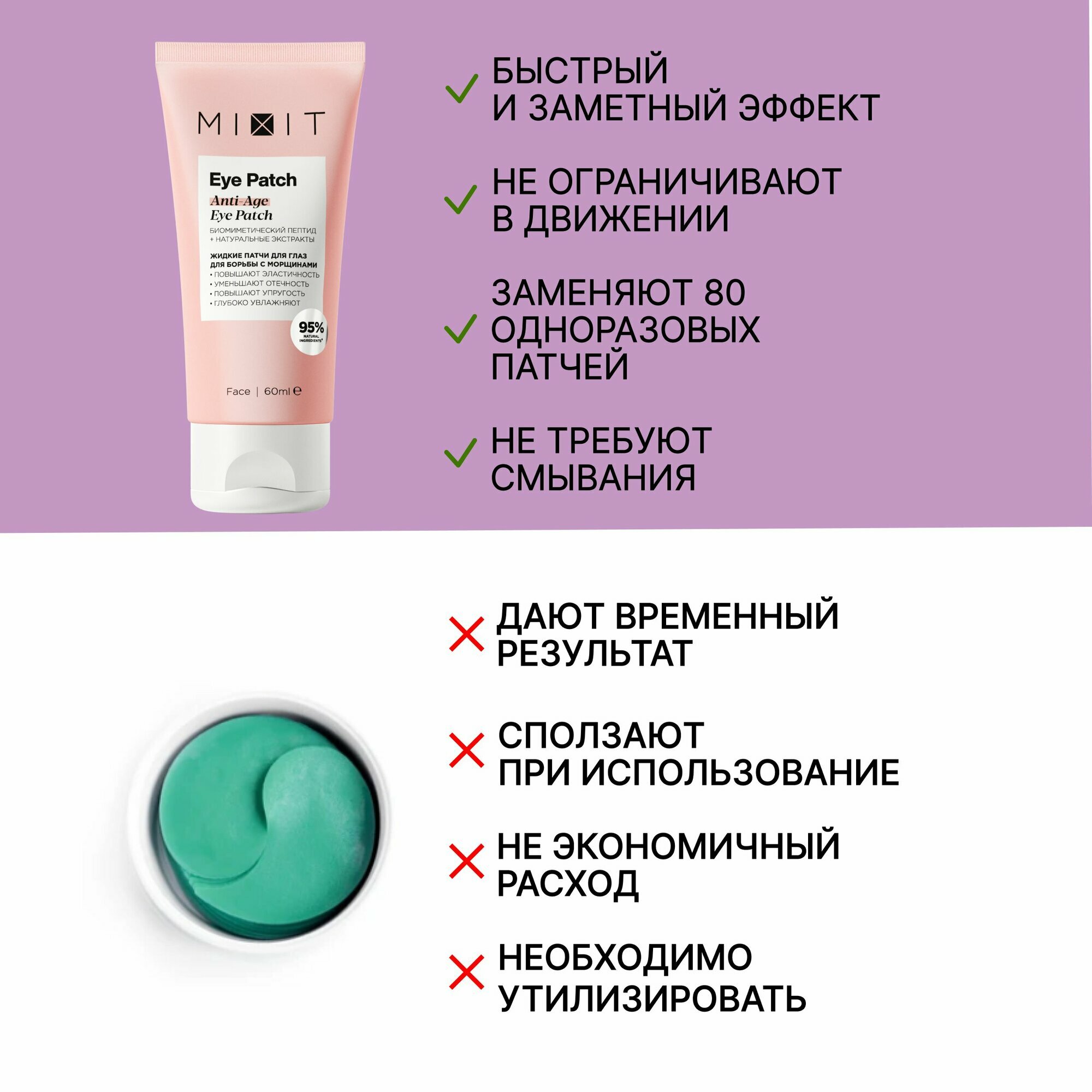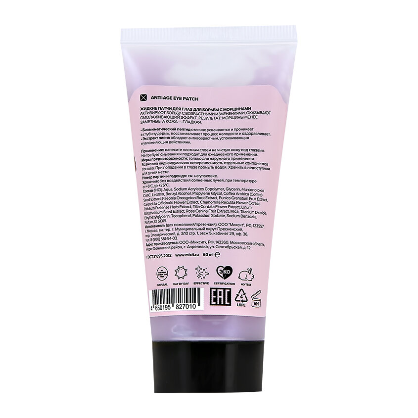 Жидкие патчи для глаз `MIXIT` для борьбы с морщинами 60 мл интересное: