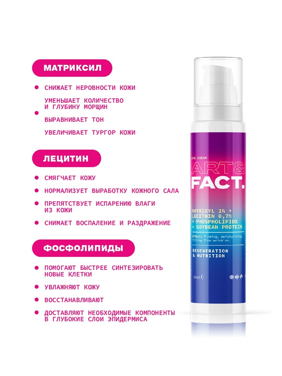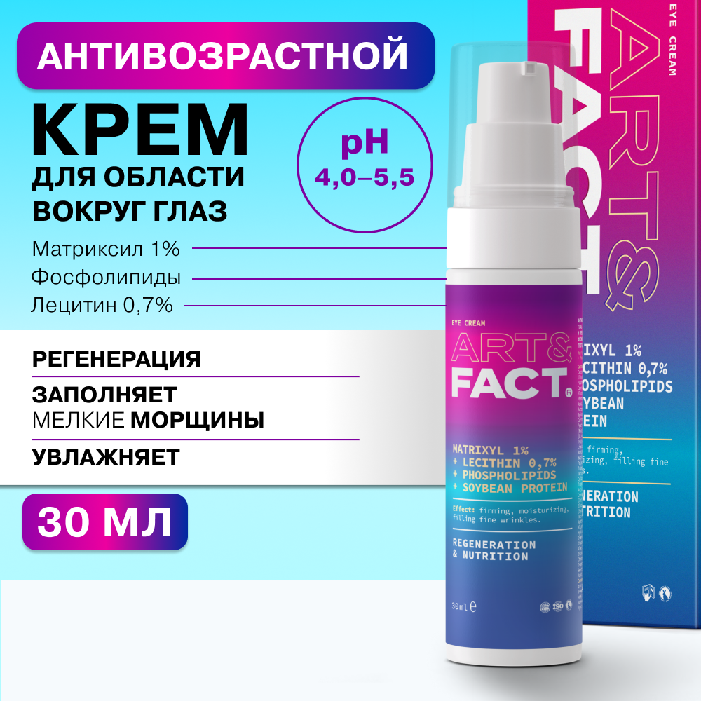 ART&FACT. / Антивозрастной крем для кожи вокруг глаз с мультикомплексом пептидов 1%, лецитином 0,7% фосфолипидами, 30 мл