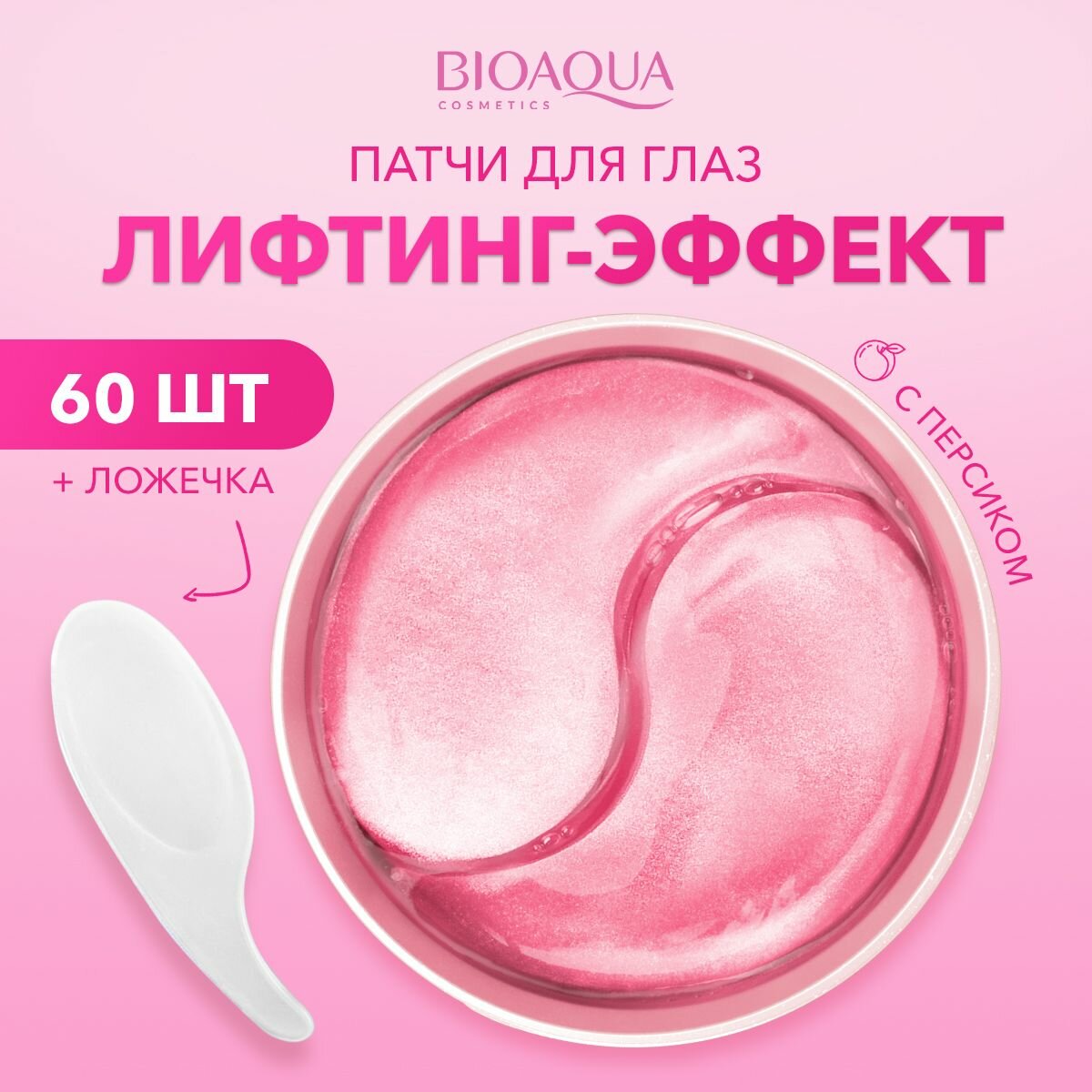 Bioaqua Подтягивающие антивозрастные гидрогелевые патчи для глаз с экстрактом персика и пептидами, 60шт.