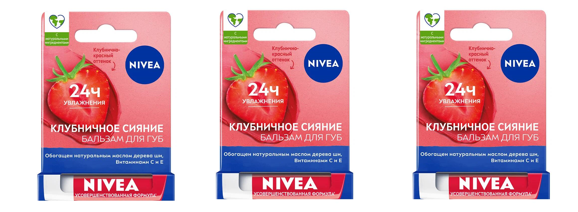 Бальзам для губ Nivea, Фруктовое сияние, клубника, 4,8 г, 3 шт