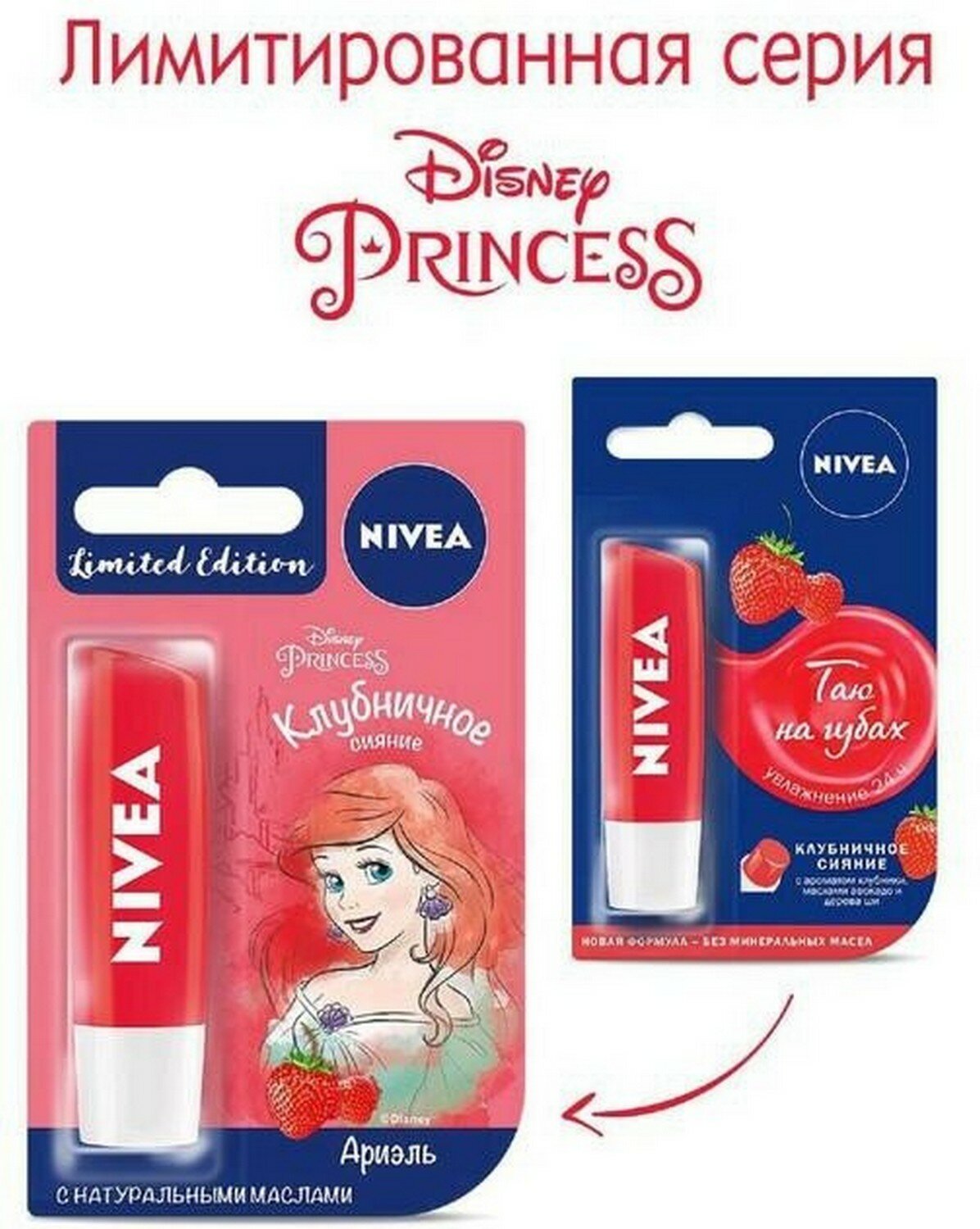 Nivea Бальзам для губ Клубничное Сияние, 4,8 г, 2 шт