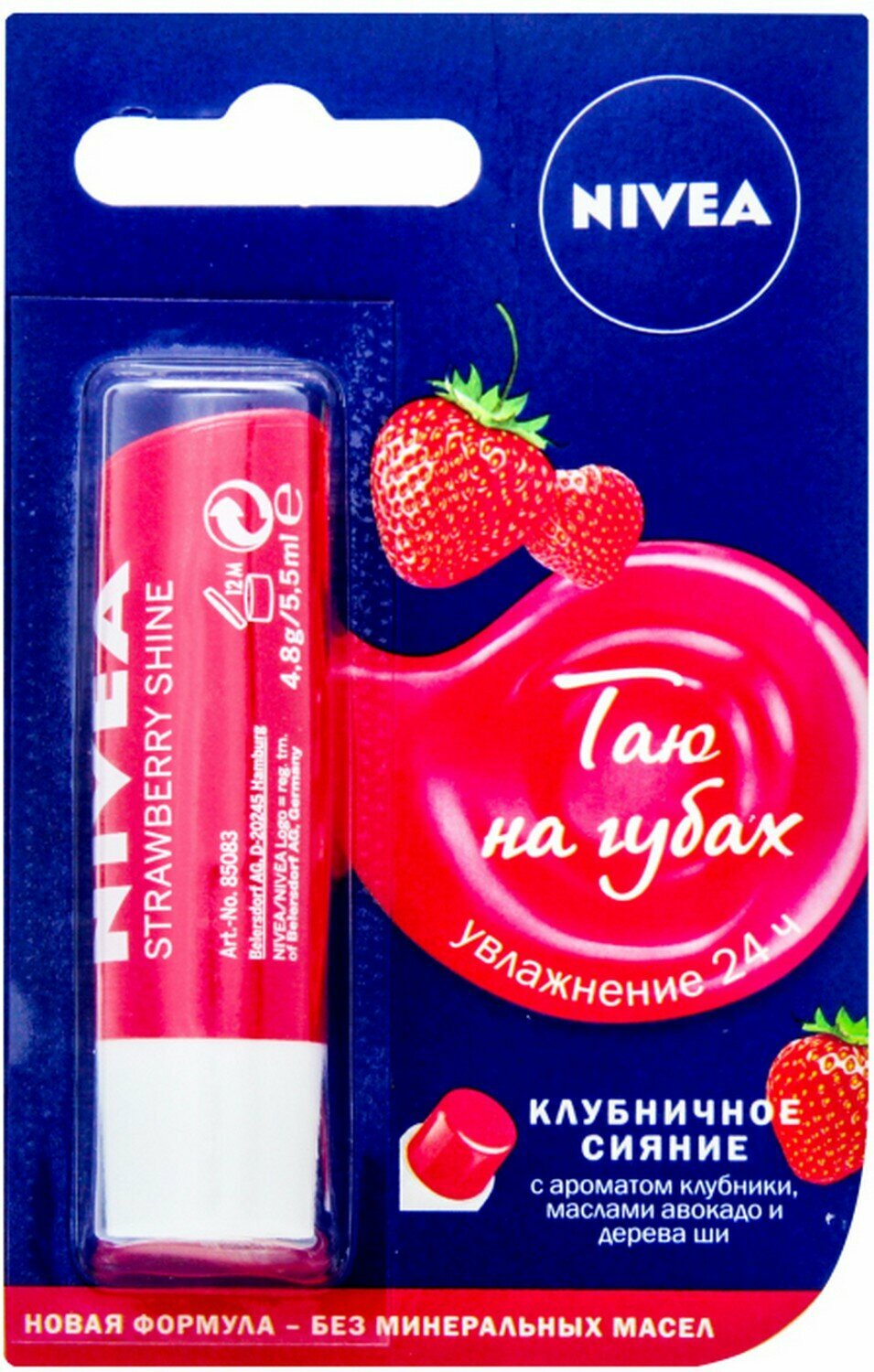 Нивея / Nivea - Бальзам для губ Клубничное сияние 24ч увлажнения 4,8 г