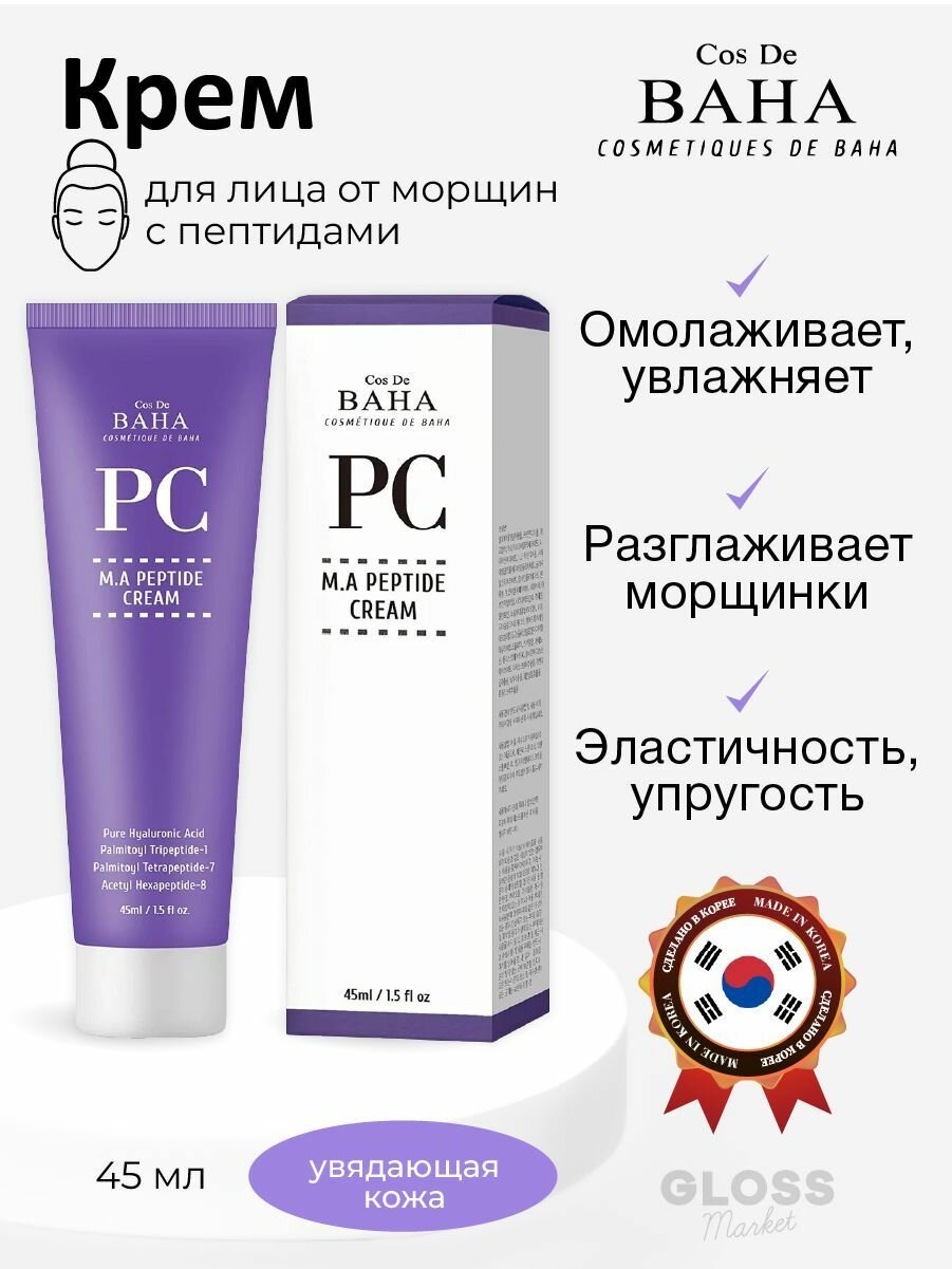 Купить COS DE BAHA Крем против морщин пептидный. M.A peptide cream (PC), 45 мл.