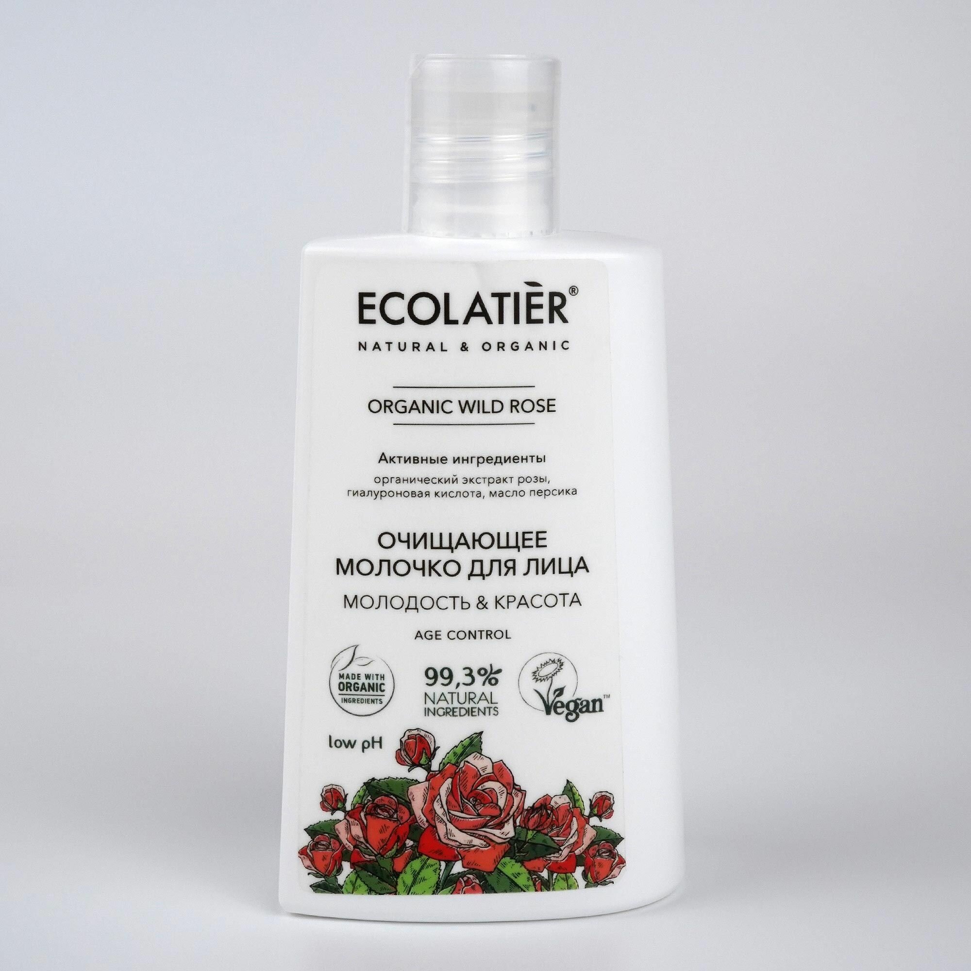 ECOLATIER / Очищающее молочко для лица Серия ORGANIC WILD ROSE, 250 мл