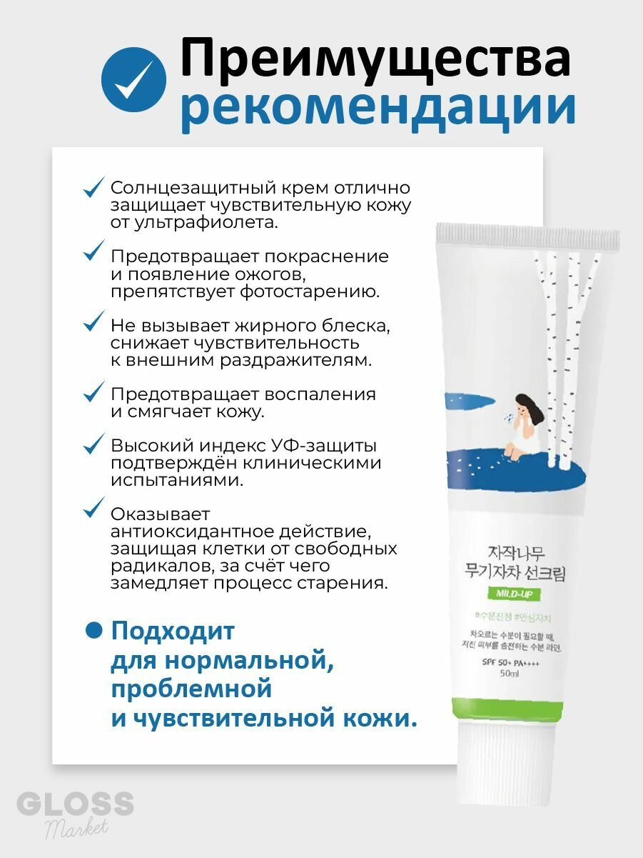 СохранитьROUND LAB Мягкий увлажняющий солнцезащитный крем Birch Juice Moisturizing Mild-Up Sunscreen SPF 50+ PA+++ 50 мл интересное: