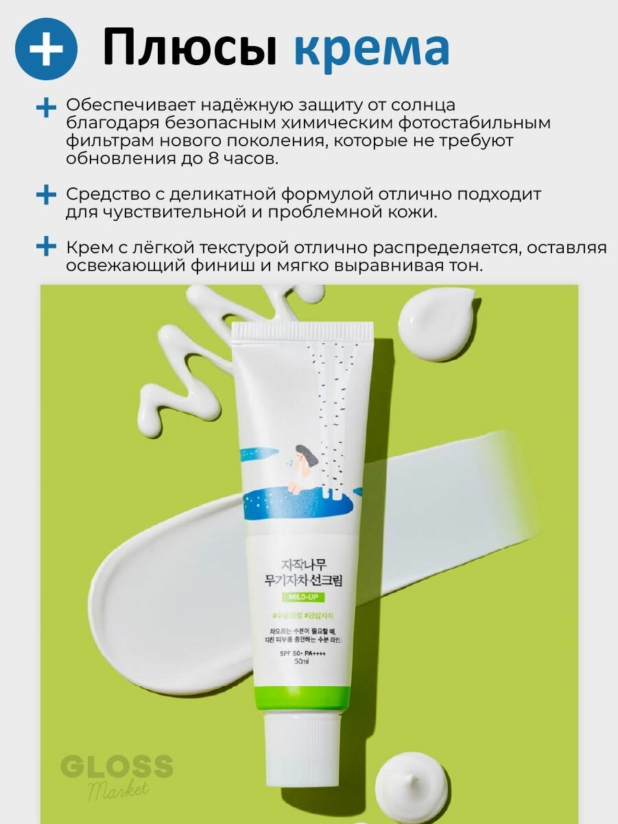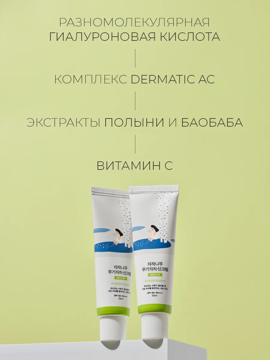 Купить ROUND LAB Мягкий увлажняющий солнцезащитный крем Birch Juice Moisturizing Mild-Up Sunscreen SPF 50+ PA+++ 50 мл