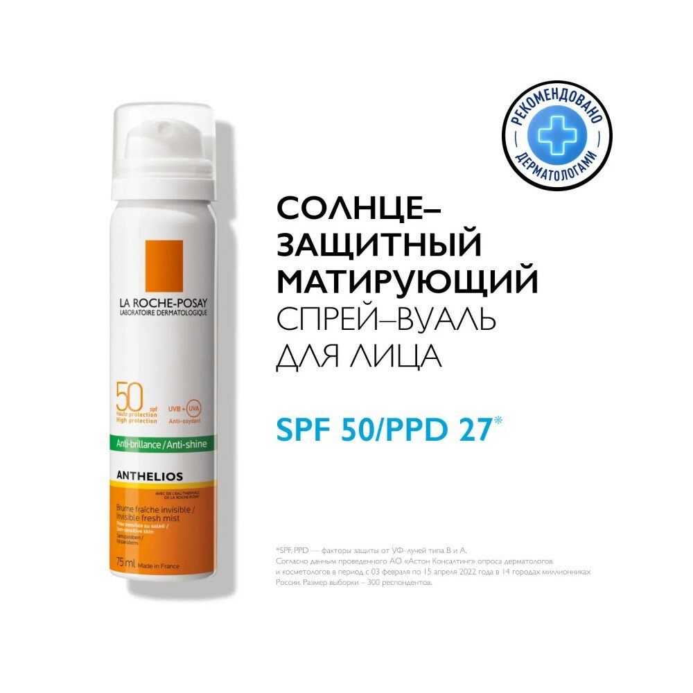 Спрей-вуаль солнцезащитный для лица матирующий SPF50 Anthelios La Roche Posay/Ля рош позе фл. 75мл (M9165720) интересное: