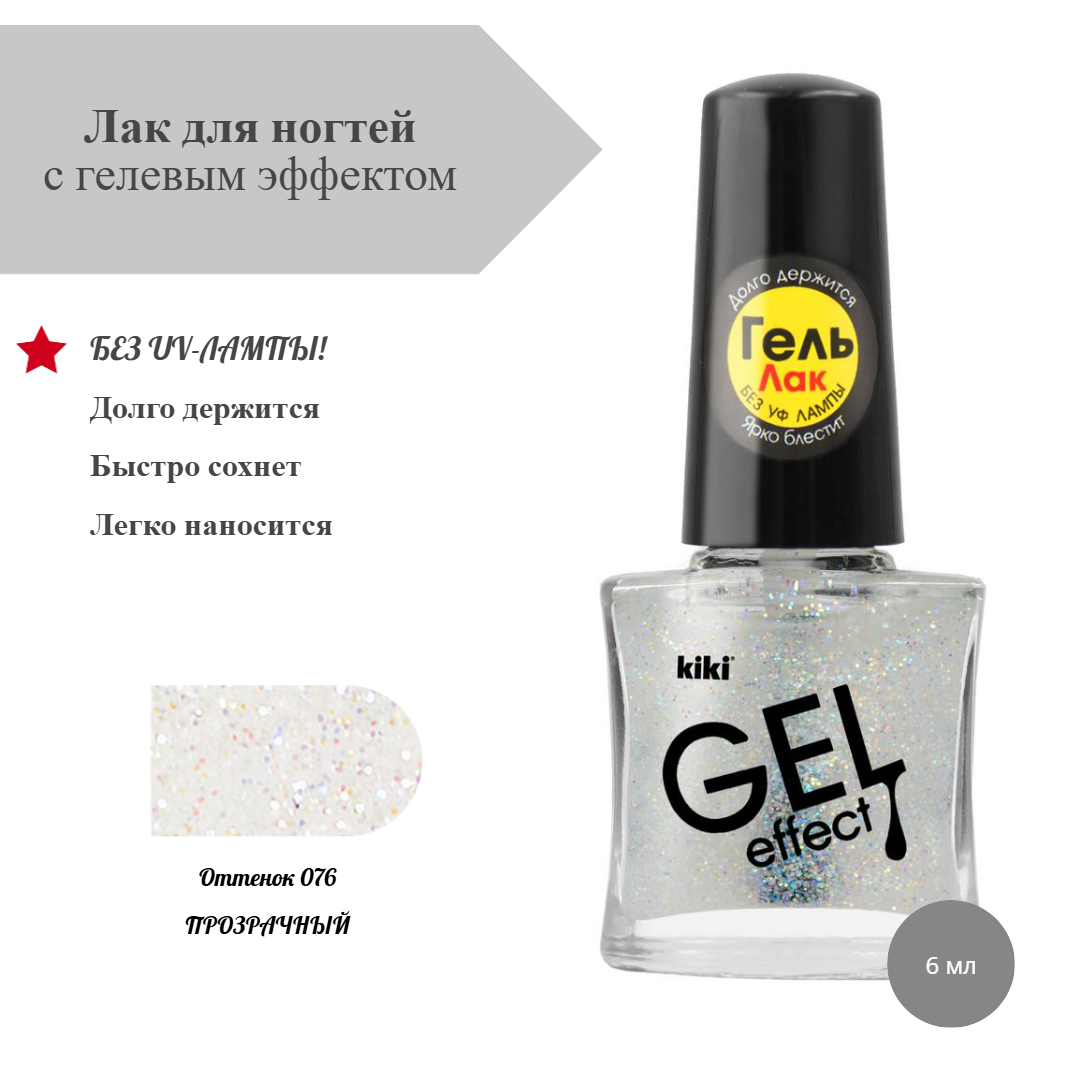 Купить Лак для ногтей Kiki Gel Effect, тон: 076 прозрачный, 6мл