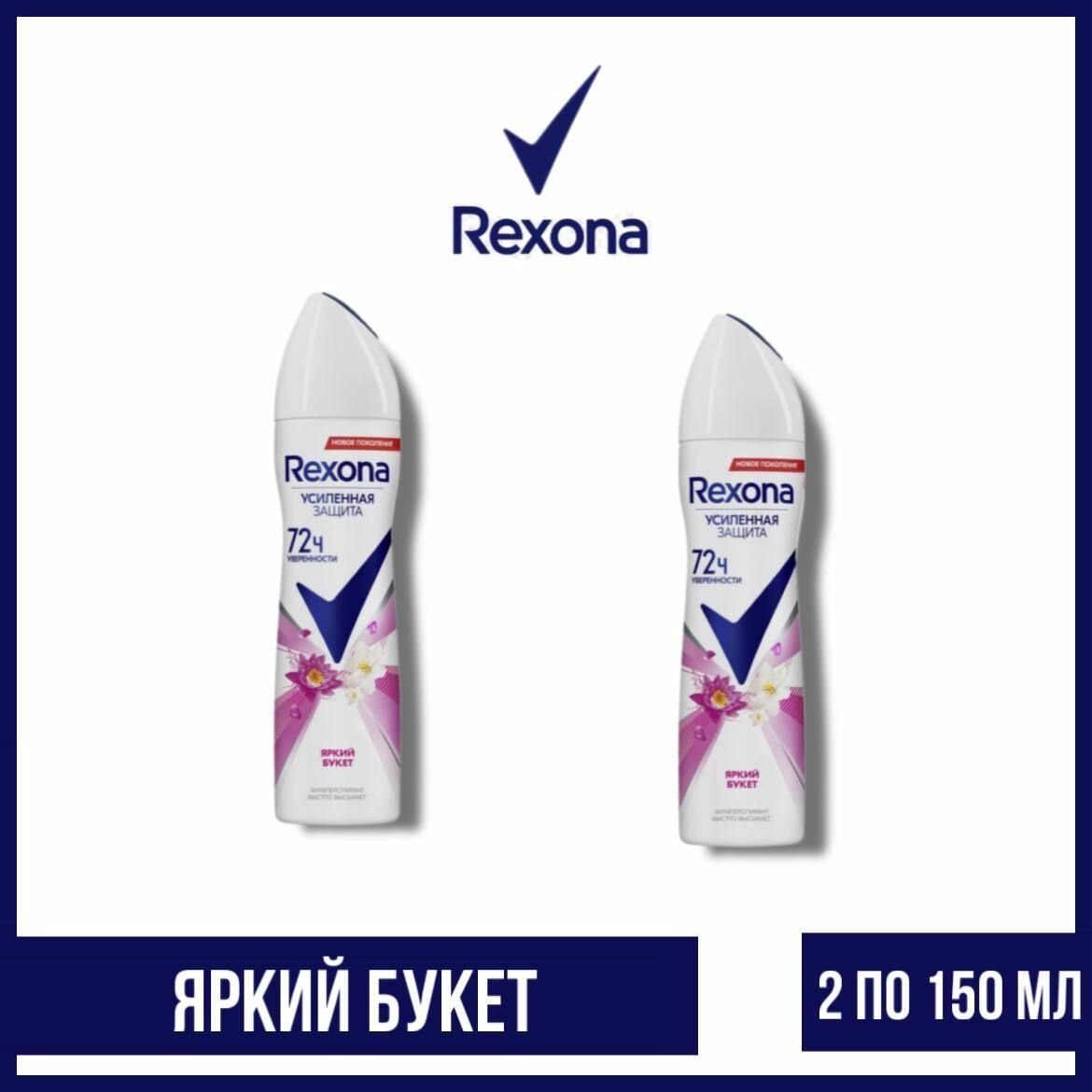 Rexona Дезодорант-антиперспирант аэрозоль Яркий букет усиленная защита 72 часа уверенности 150 мл - 2 шт