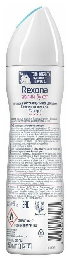 Rexona Дезодорант-антиперспирант аэрозоль Яркий букет усиленная защита 72 часа уверенности 150 мл - 3 шт