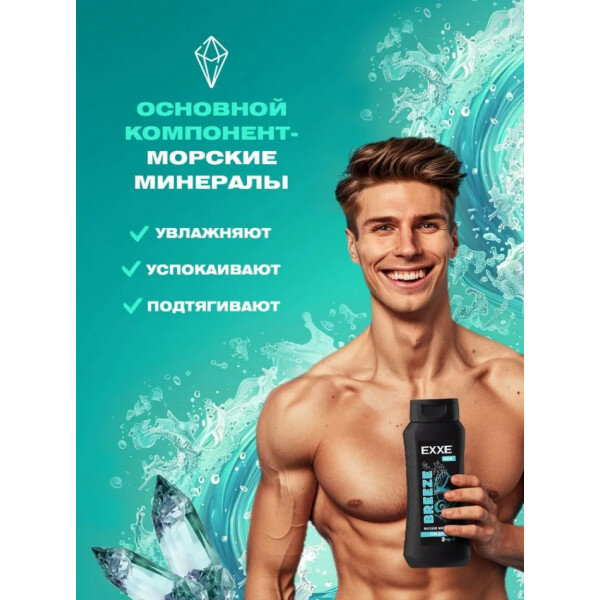 EXXE Гель для душа Men Breeze 2в1, Морские минералы, 400 мл, 3 шт