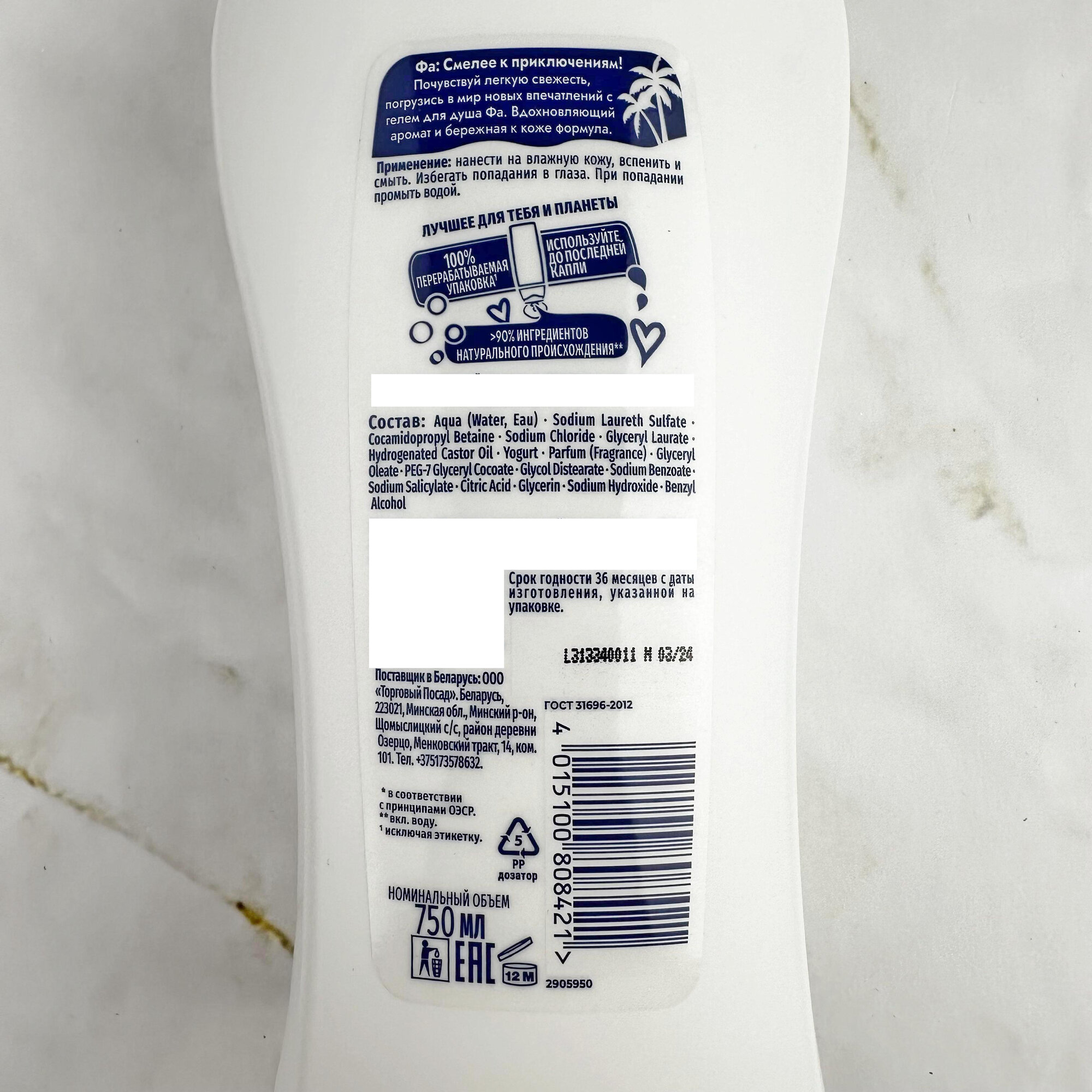 Крем-гель для душа Fa Греческий йогурт увлажняющий сладкий 750 мл
