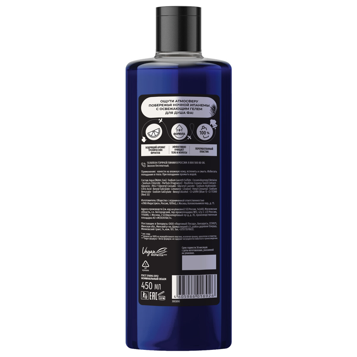 | Активный ингредиент | бетаин / лимонная кислота / пребиотики / протеины / сок алоэ / спирт |