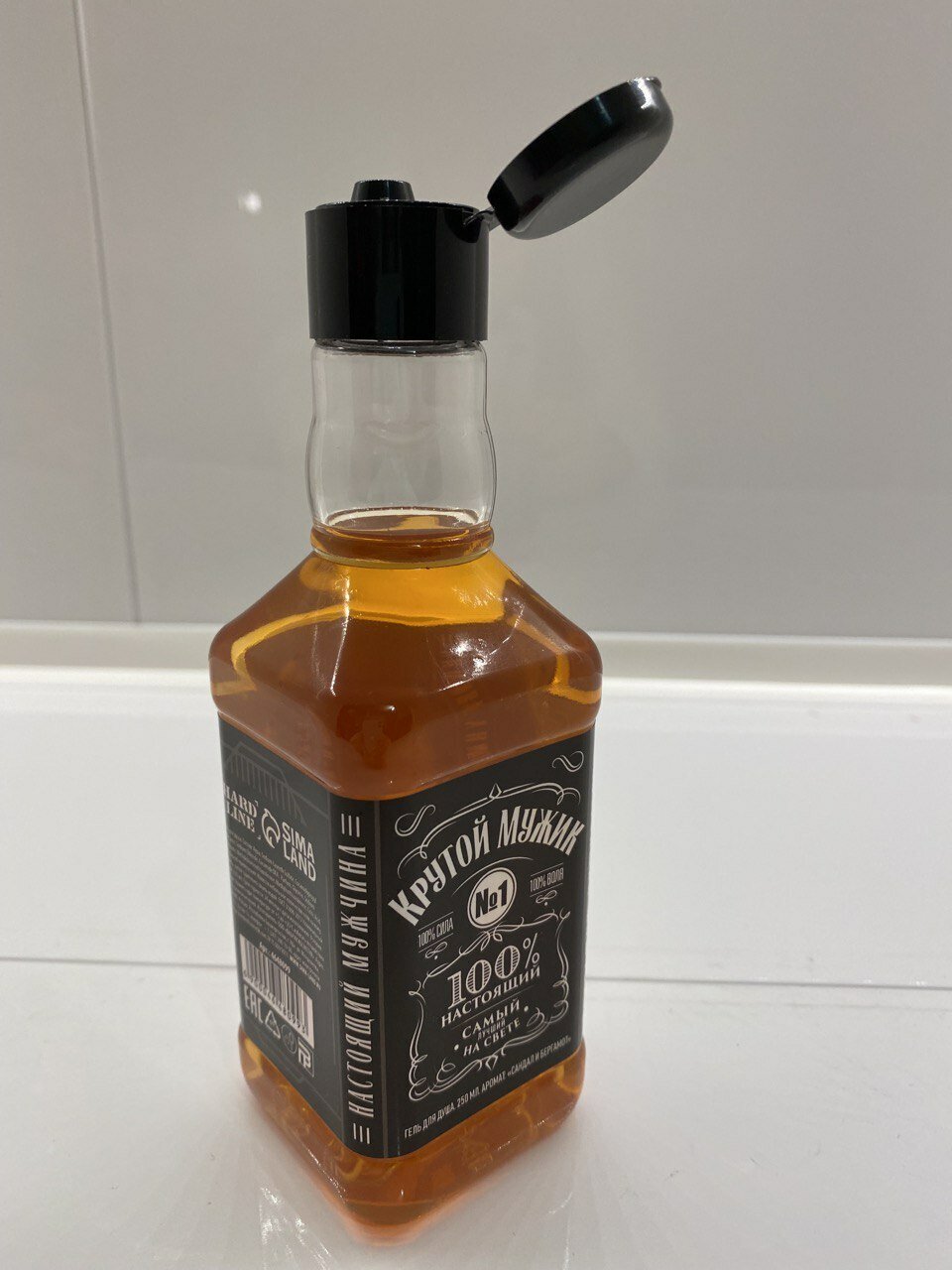 Гель для душа мужской подарочный «Крутой мужик», в прикольном флаконе виски, аромат сандал и бергамот, 500 мл