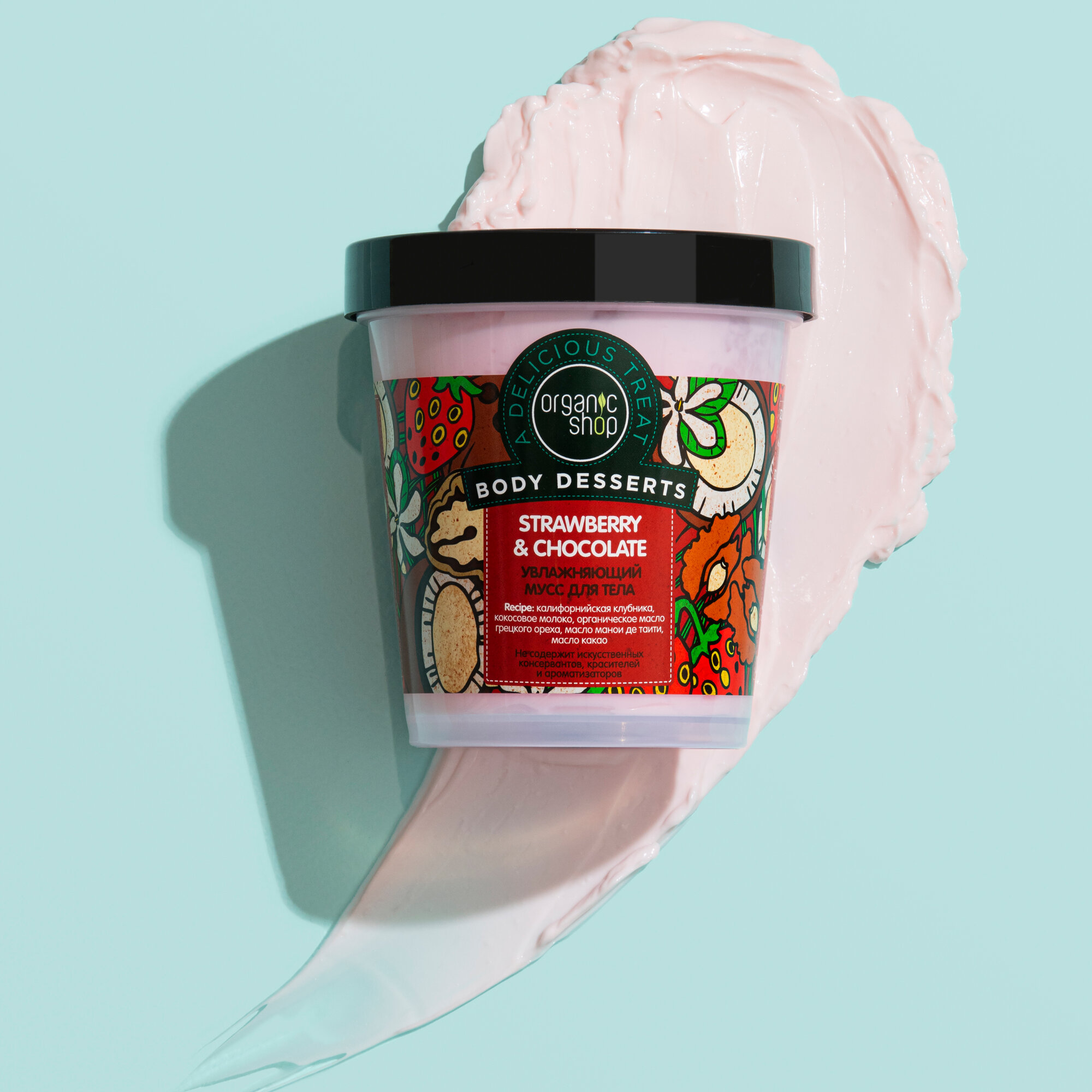 Organic Shop Body Desserts Клубника и шоколад Крем мусс для тела увлажняющий и питательный с маслом какао 450 мл