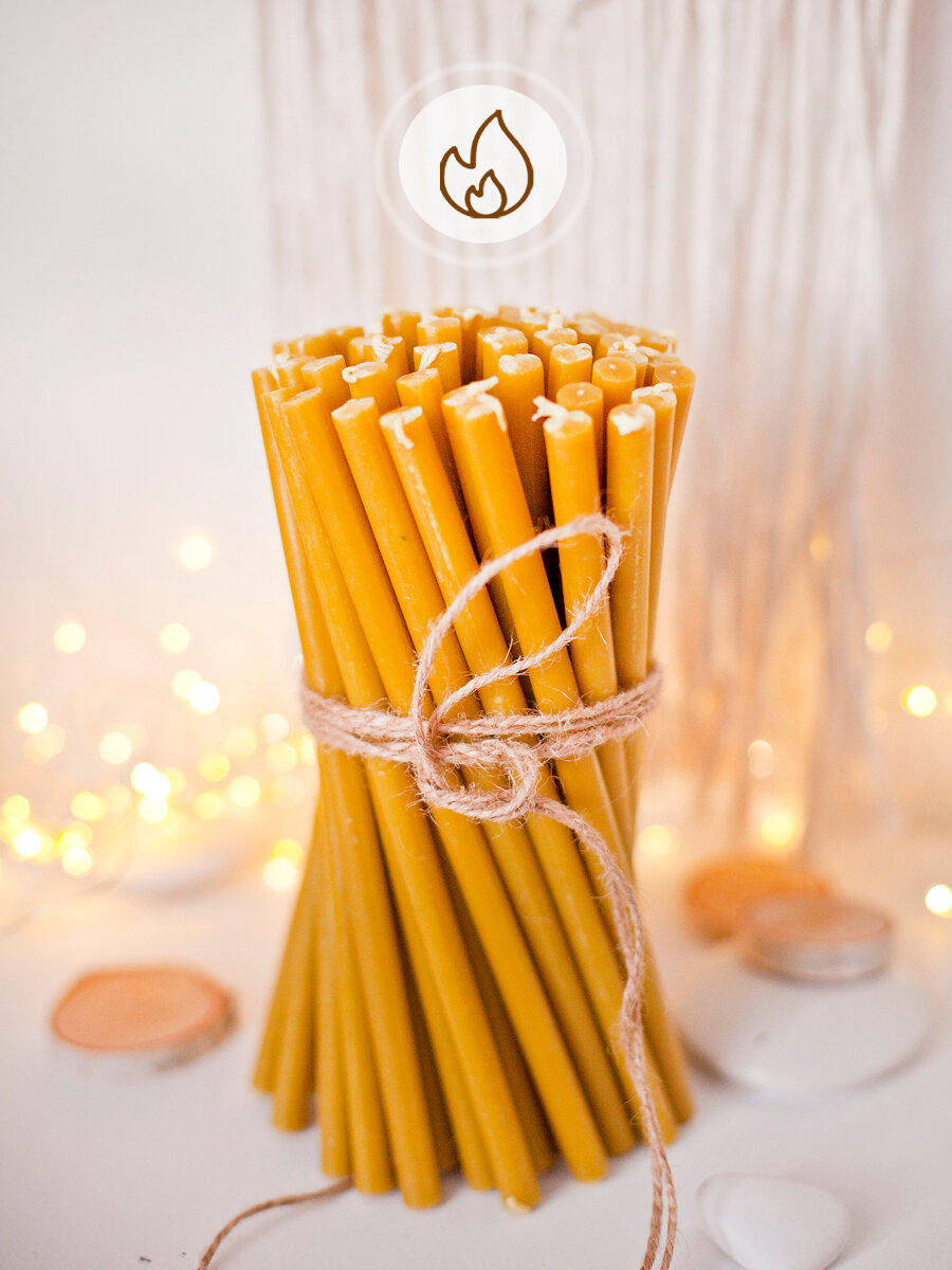Свечи Даниловские, восковые, освященные, цилиндрические, желтые, 18см, 100 штук