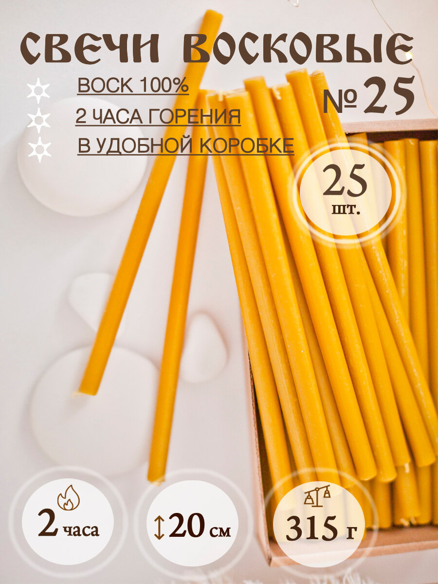 Свечи восковые церковные освещенные № 25 (25шт/315гр)