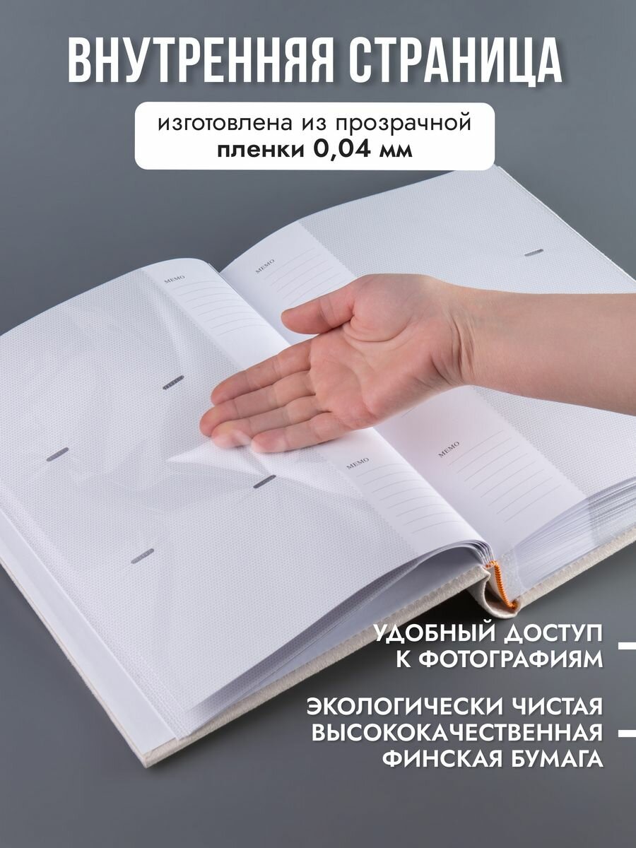 Фотоальбом на 200 фото 10х15, с кармашками, бежевый, 22 х 22,5 х 5,5 см