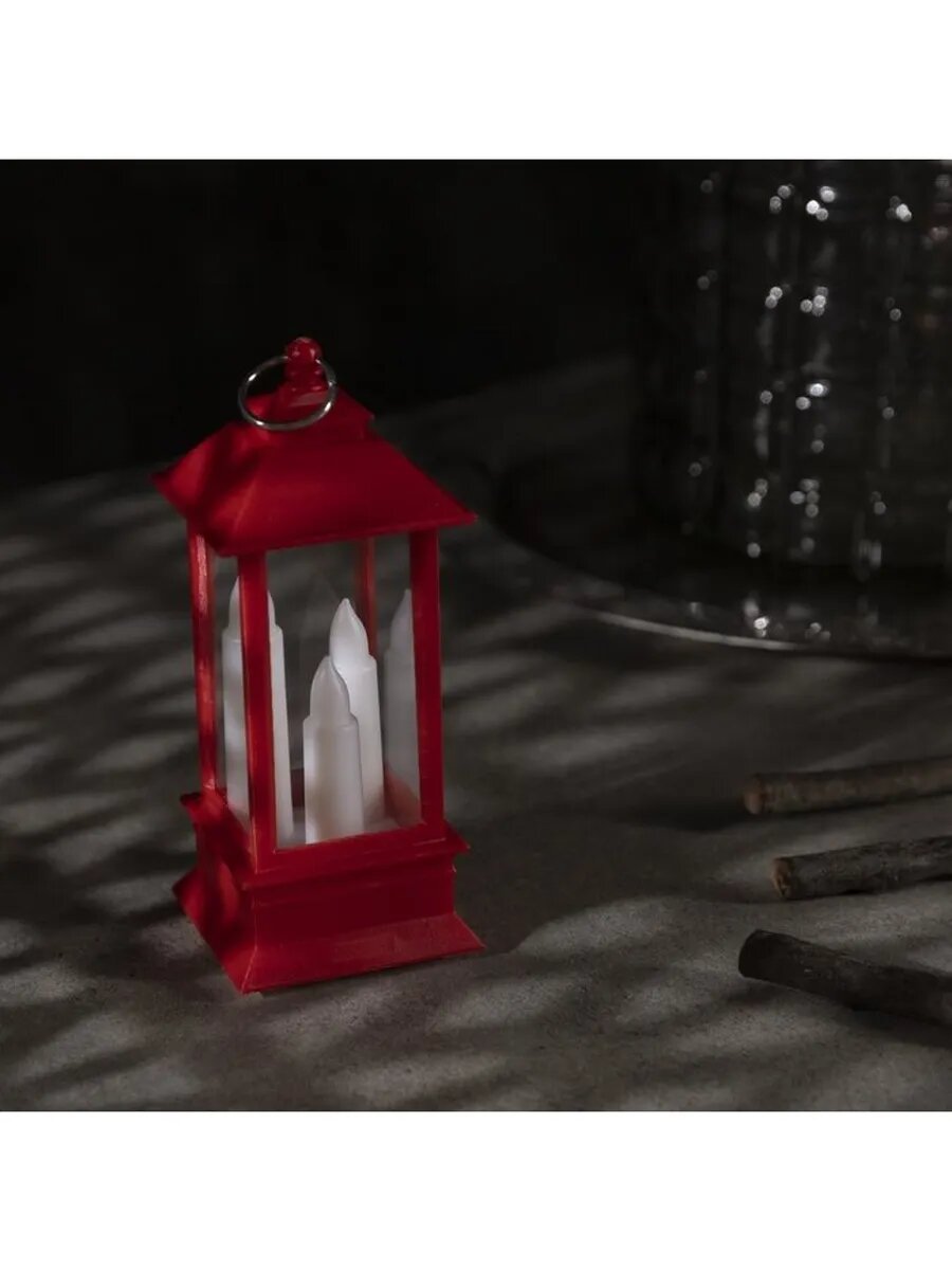 Светодиодная фигура "Красный фонарь со свечками" 5.5 x 13 x 5.5 см, пластик, батарейки AG13х3
