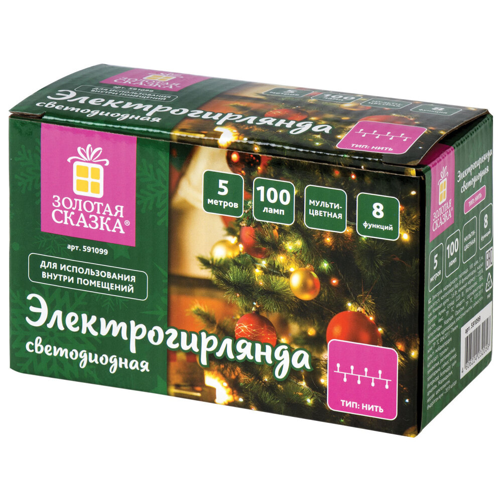 Электрогирлянда светодиодная золотая сказка "Стандарт", 100 ламп, 5 м, многоцветная, контроллер