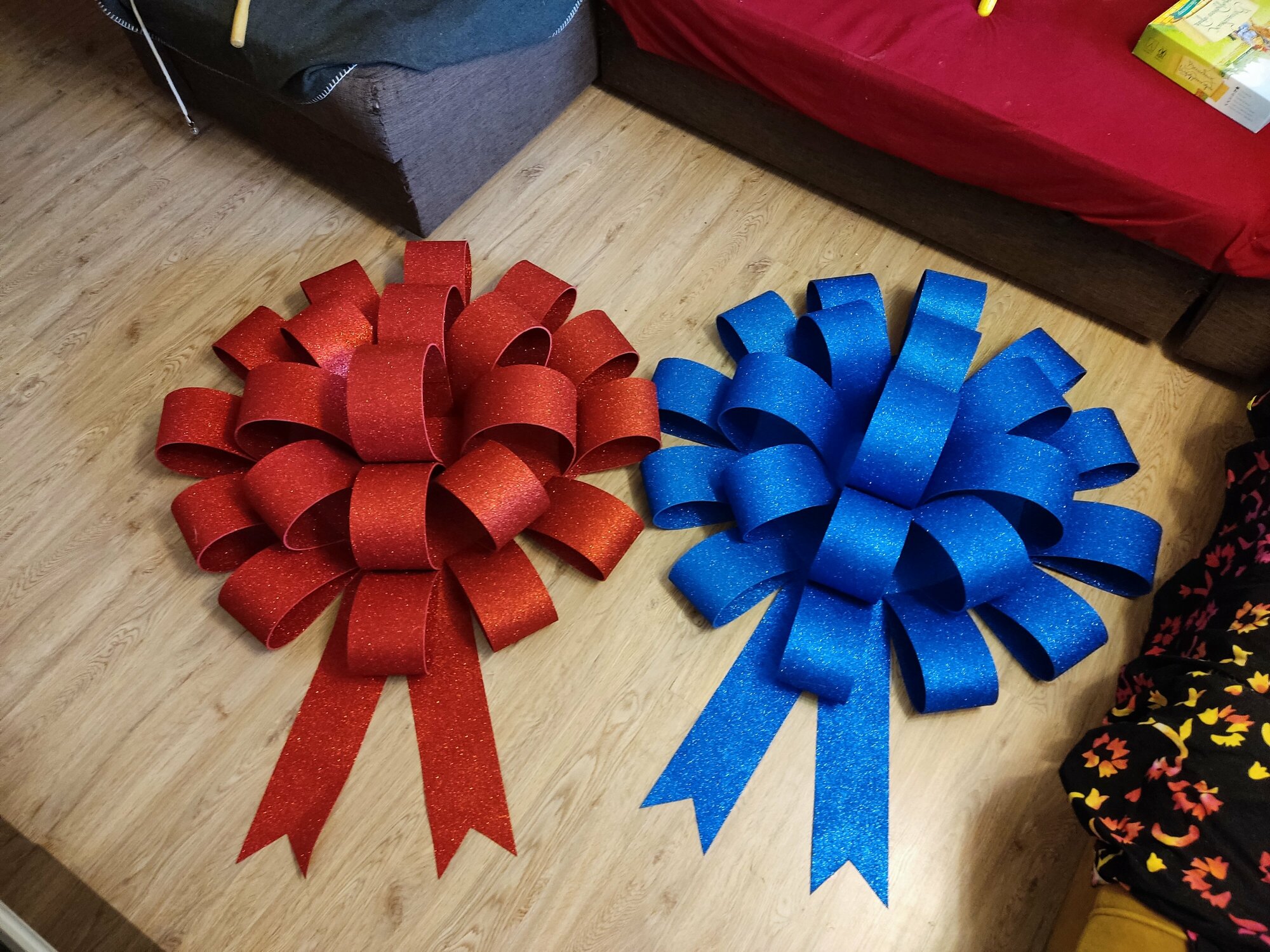 Большой бант на авто / Бант на машину подарочный / Огромный бант для оформления подарка / Красный глиттерный гигантский бант 100 см / Метровый бант