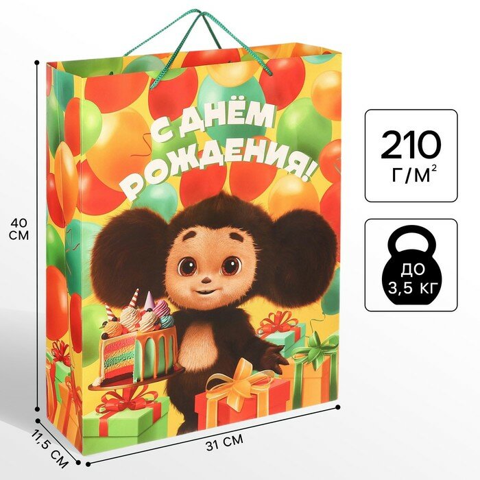 Купить Пакет подарочный «С днём рождения»,31х40х11.5 см, упаковка, Чебурашка